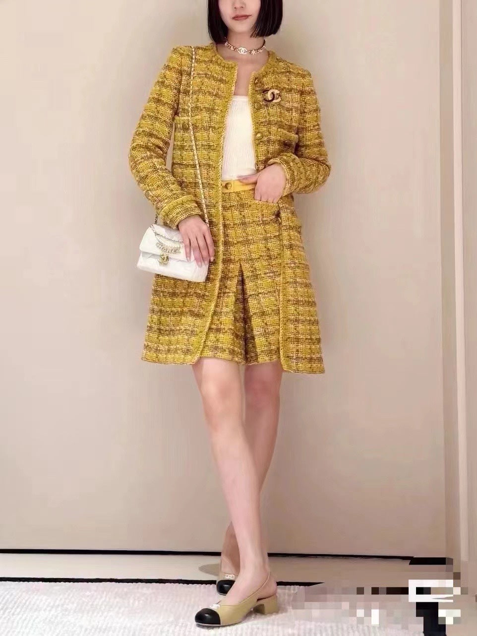 CC MINI 22 FLAP BAG IN WHITE CALFSKIN GOLD HARDWARE