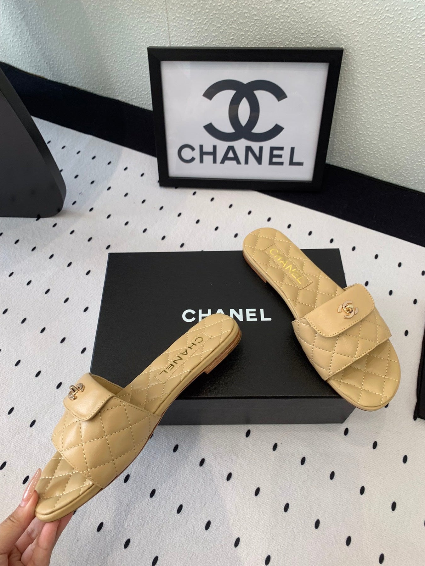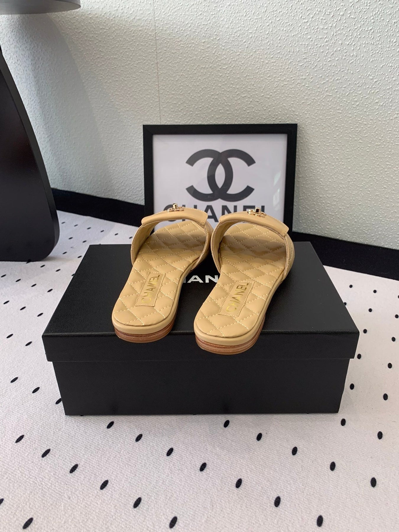 CC SLIPPERS IN YELLOW CREAM CALFSKIN