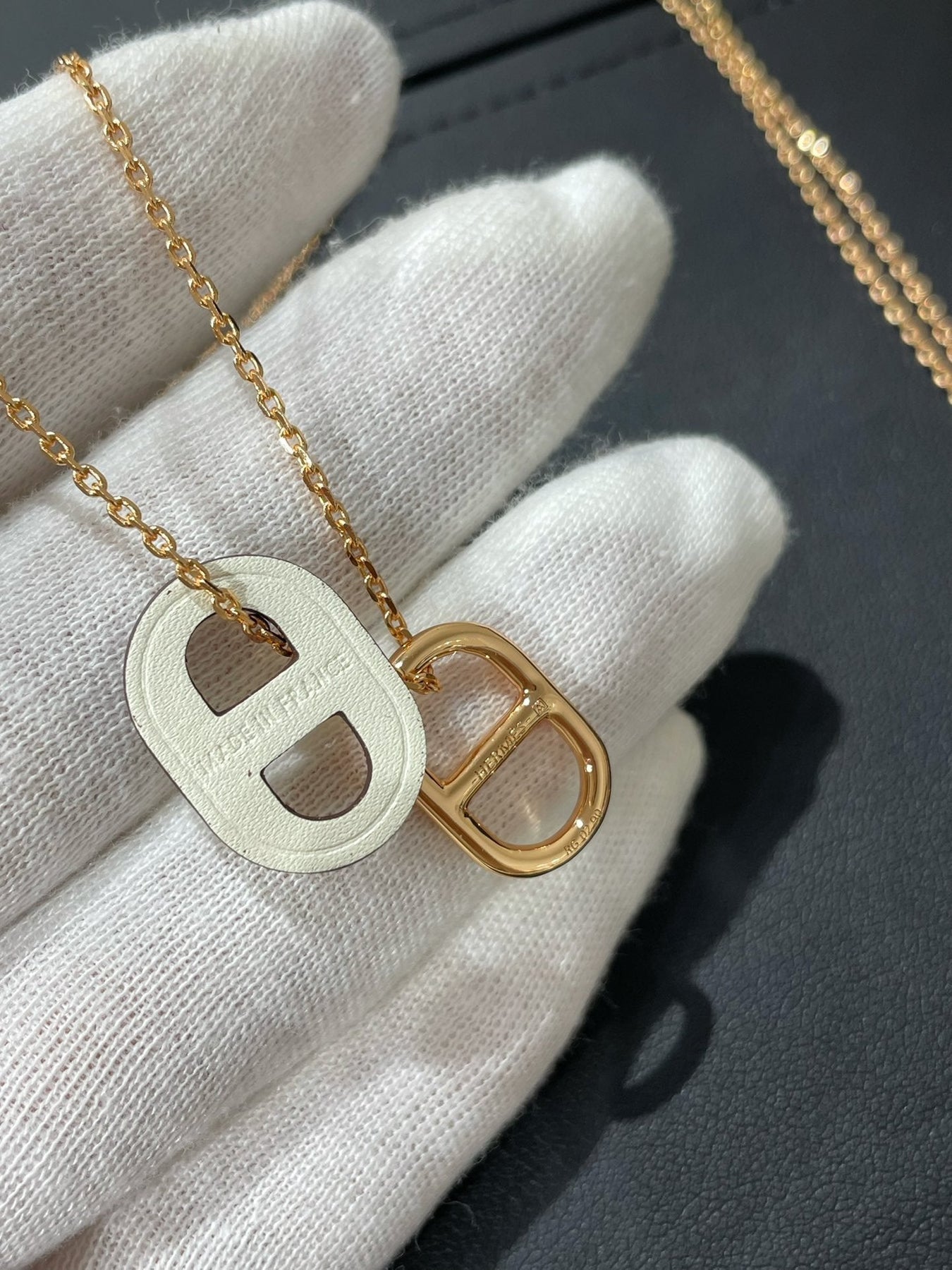 CHAINE LEATHER TAG PINK GOLD NECKLACE