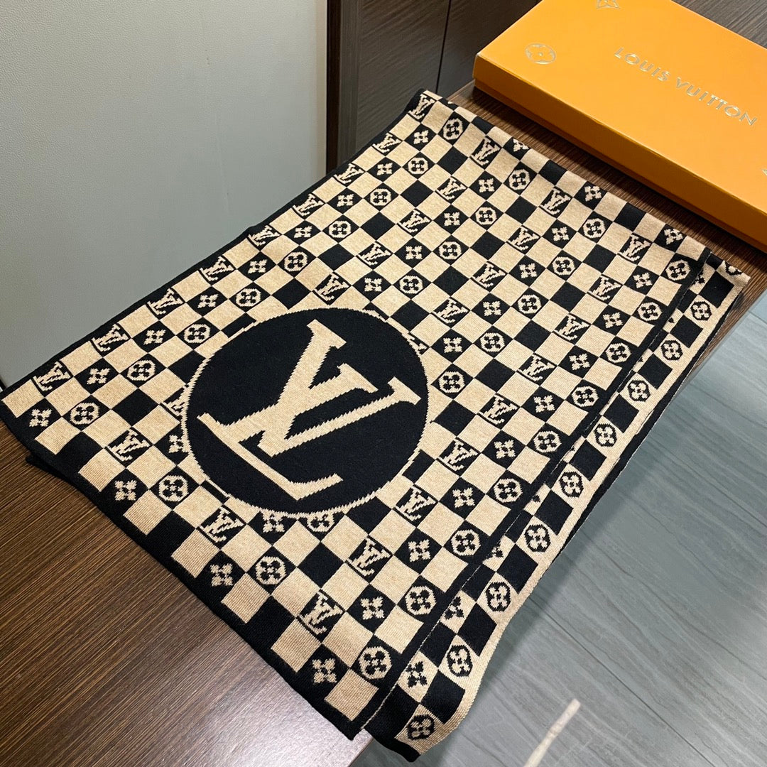 CLASSIC DAMIER SCARF 200 CM IN TORTILLA BROWN MIX BLACK CASHMERE 389749