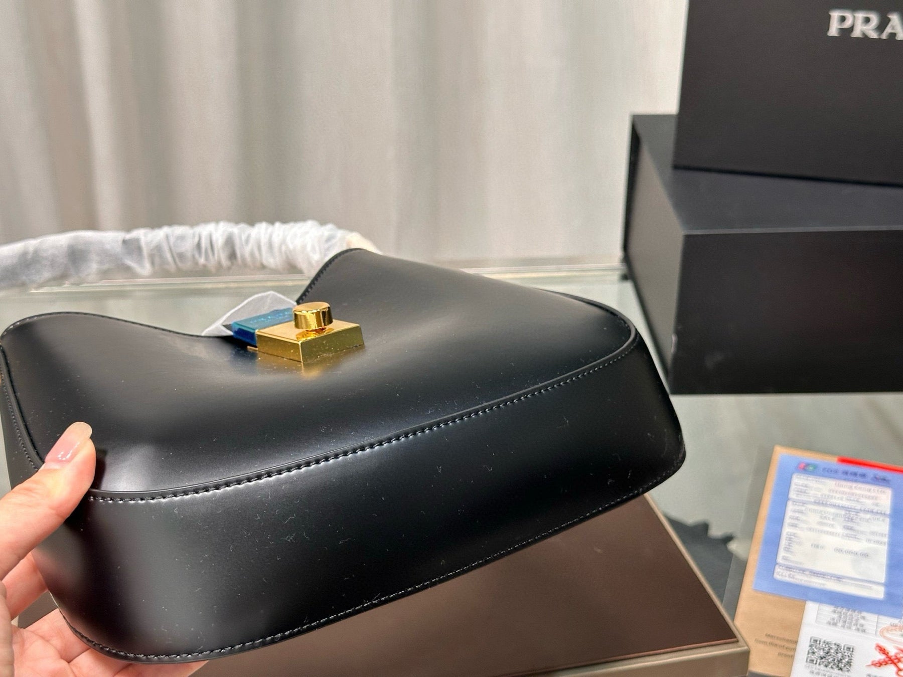 CLEO SHOULDER BAG 26 IN BLACK BRUSHED LAMBSKIN GOLD HARDWARE