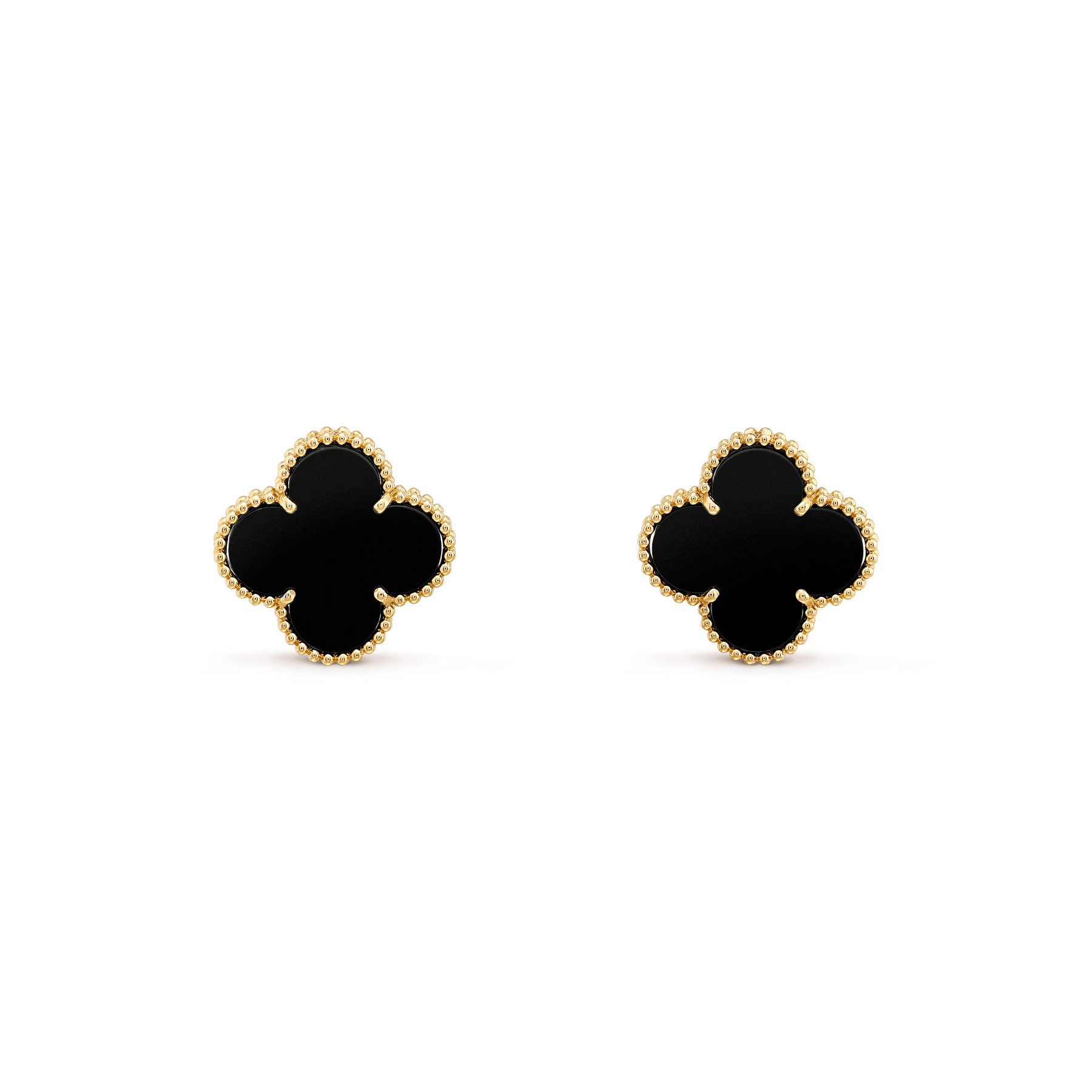 CLOVER MEDIUM ONYX PINK GODL EARRINGS