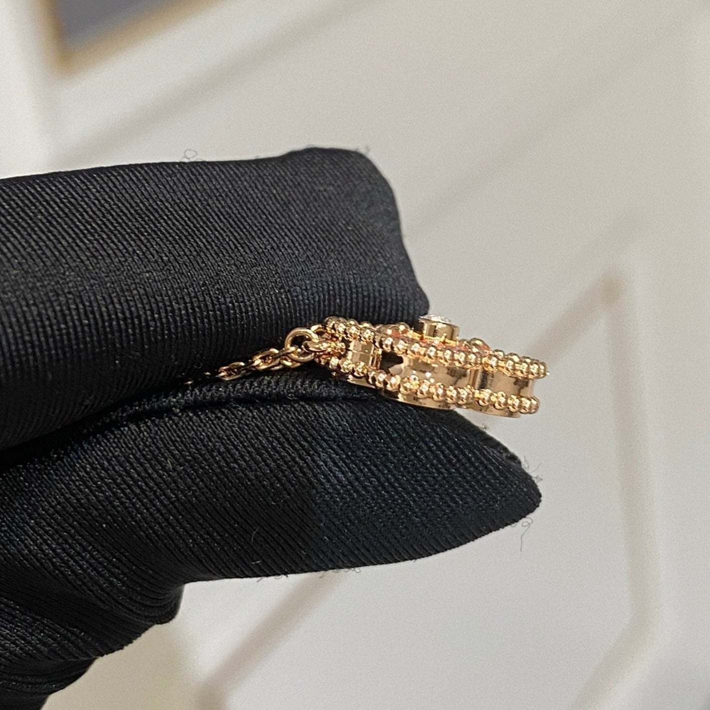 CLOVER RHODONITE 1 DIAMOND PINK GOLD NECKLACE