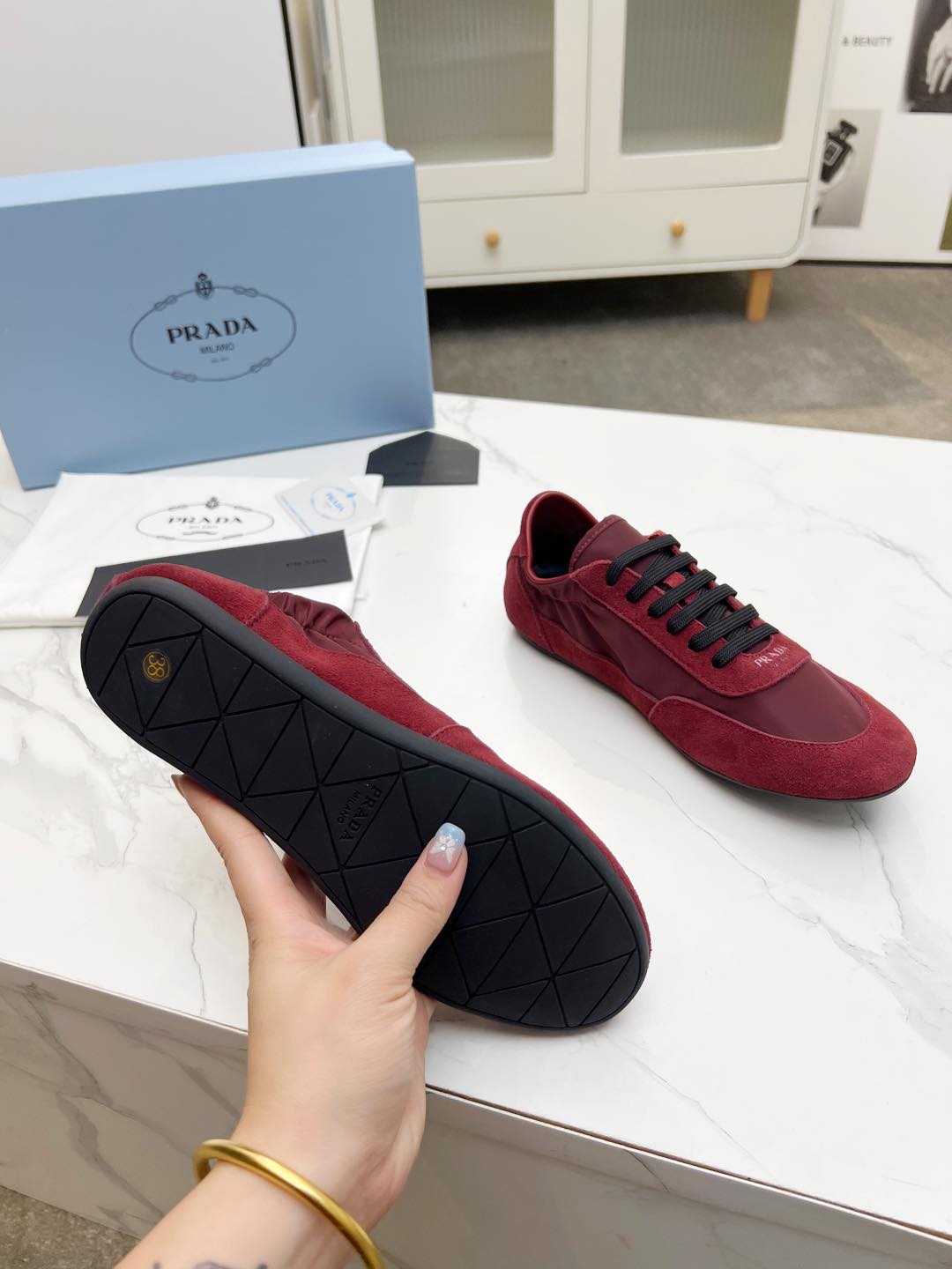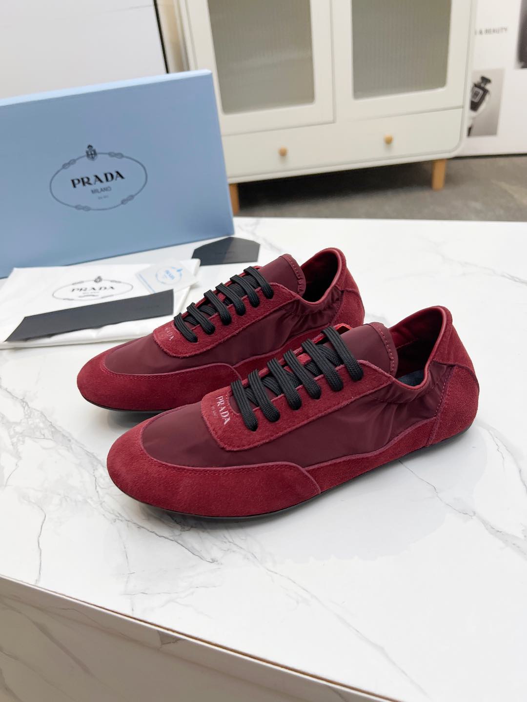 COLLAPSE SNEAKERS IN BURGUNDY RED SUEDE AND NYLON