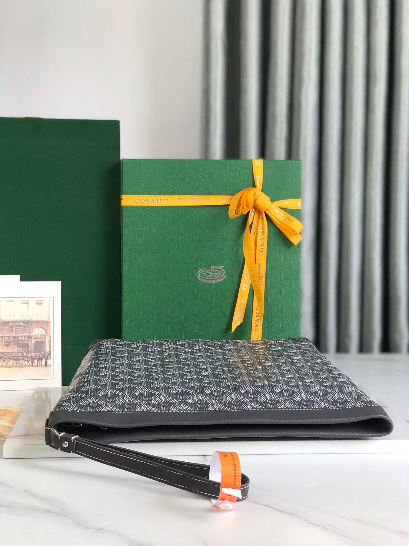 CONTI POUCH 24 IN GREY BLACK LAMBSKIN AND GOYARDINE CANVAS