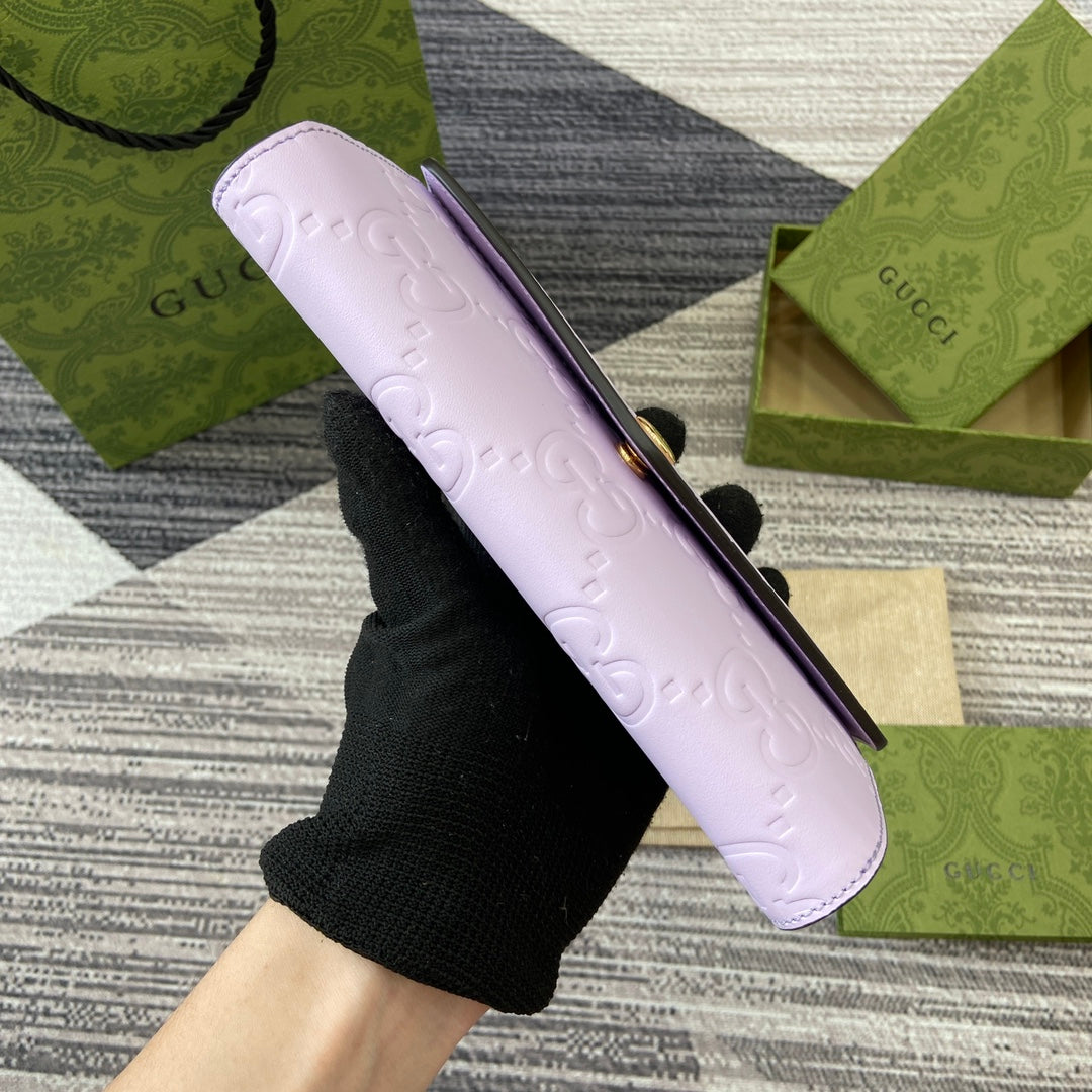 CONTINENTAL WALLET 19 IN LIGHT VIOLET EMBOSSED CALFSKIN GOLD HARDWARE