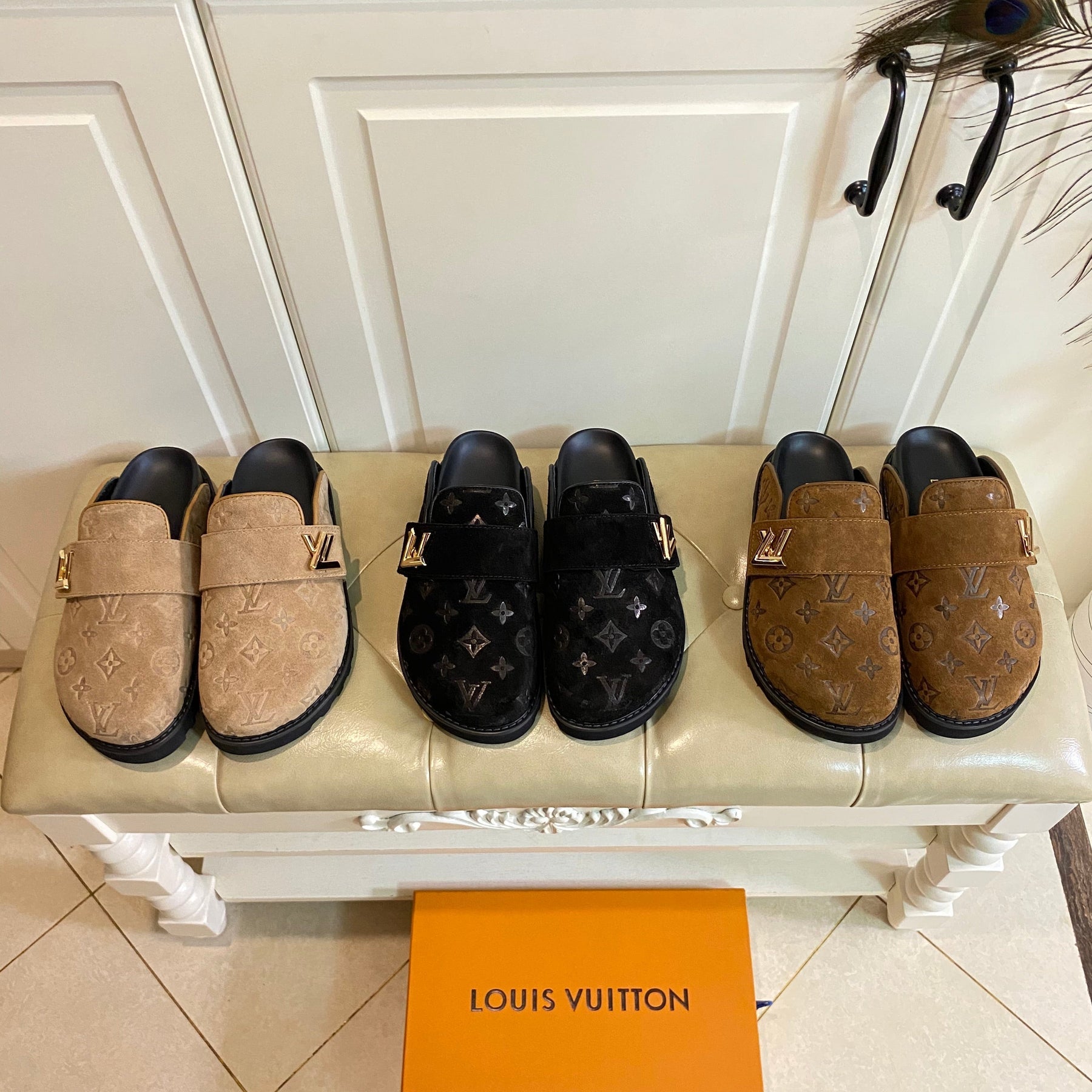 COSY FLAT COMFORT CLOG IN CHOCOLATE BROWN EMBOSSED SUEDE