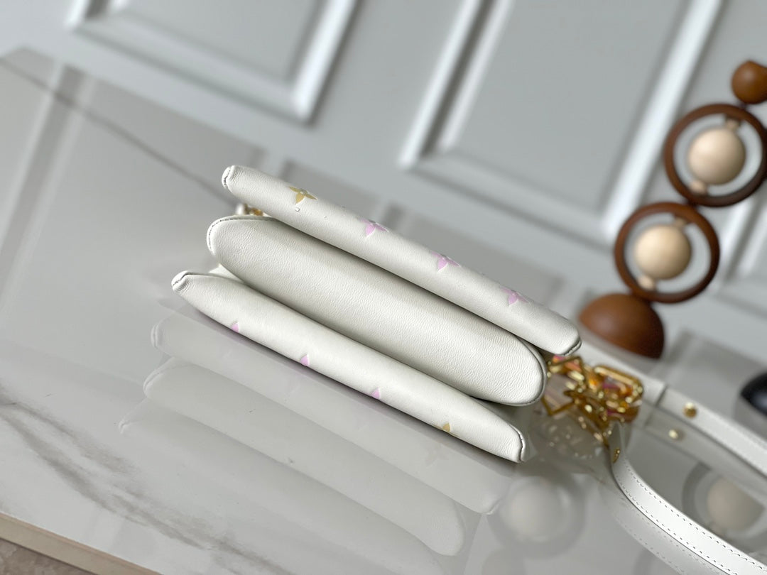 COUSSIN BB 21 IN WHITE MONOGRAM EMBOSSED LAMBSKIN GOLD HARDWARE