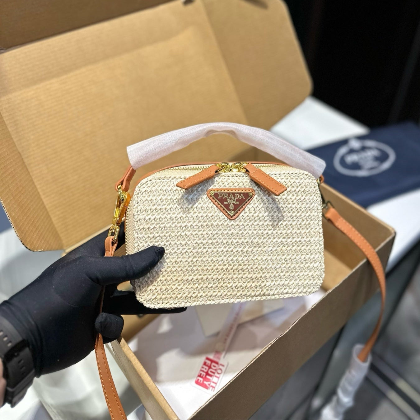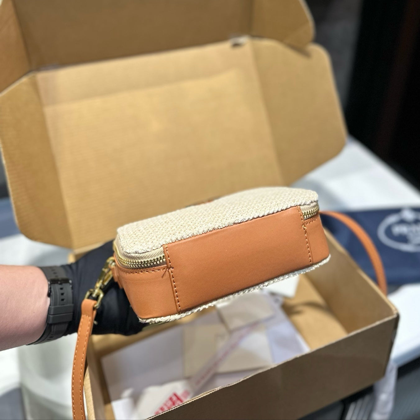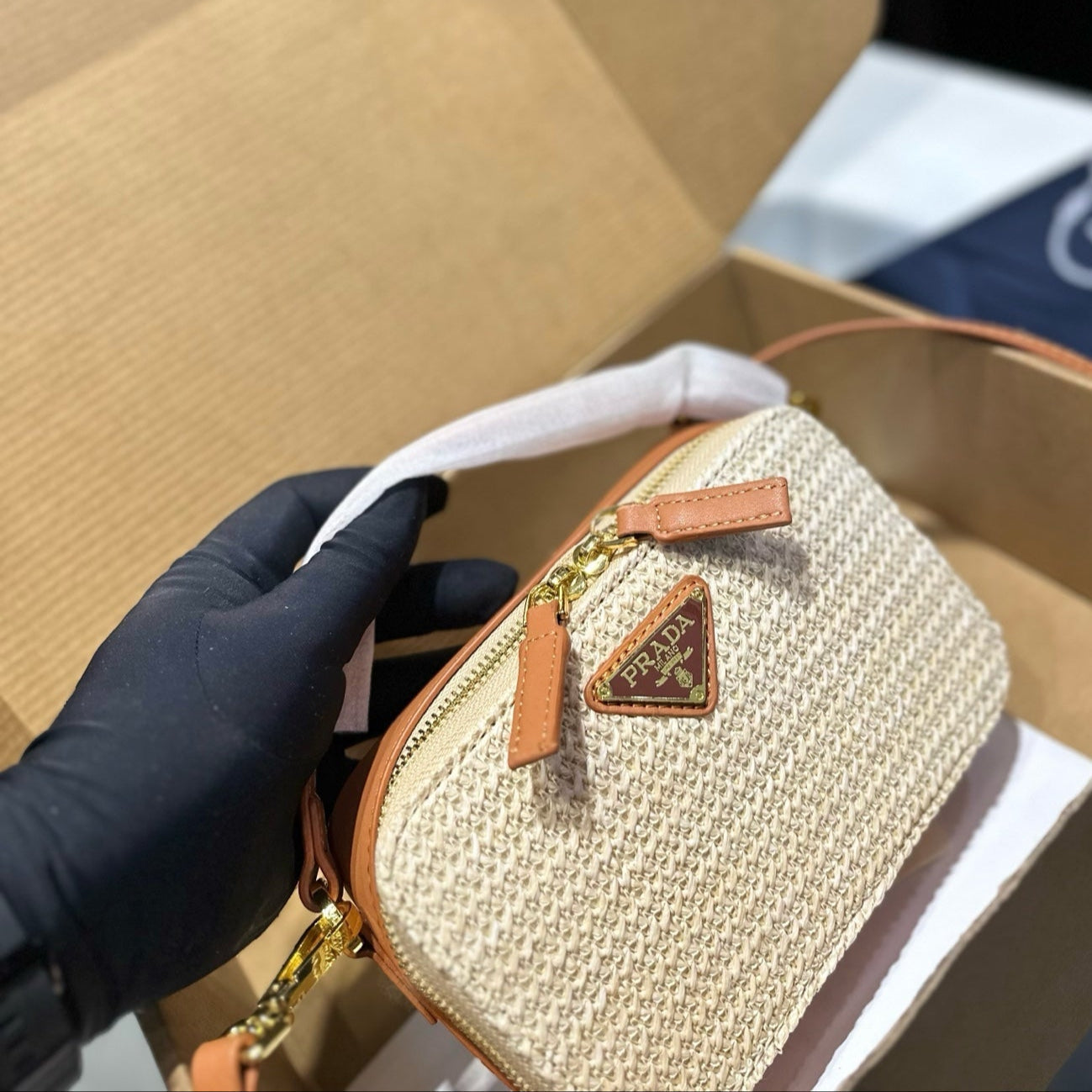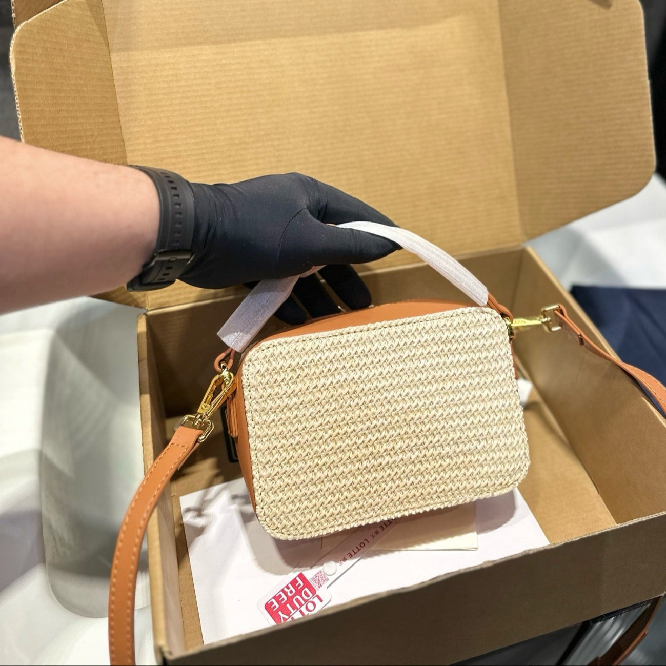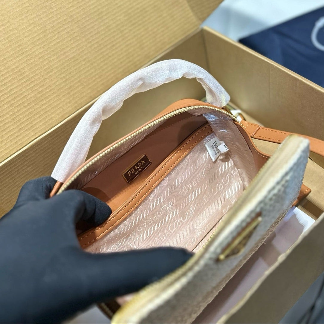 CROCHET SHOULDER BAG 18 IN BEIGE WOVEN RAFFIA CALFSKIN STRAP
