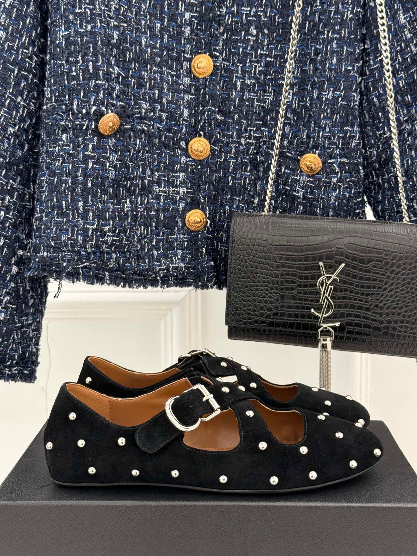 CROSSED STRAP BALLET FLATS IN BLACK SUEDE