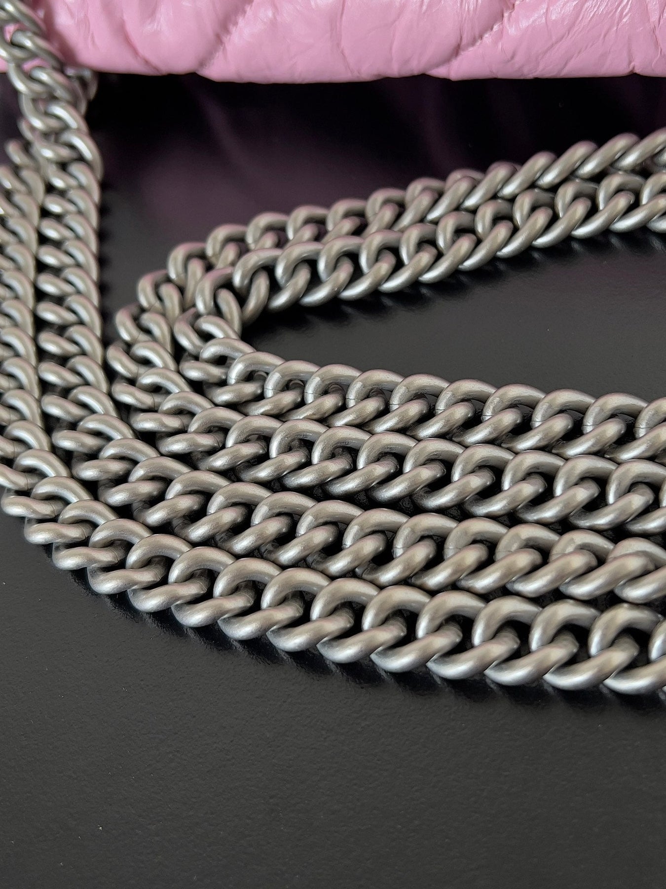 CRUSH CHAINED BAG 32 IN PINK QUILTED CRUSHED CALFSKIN SILVER HARDWARE