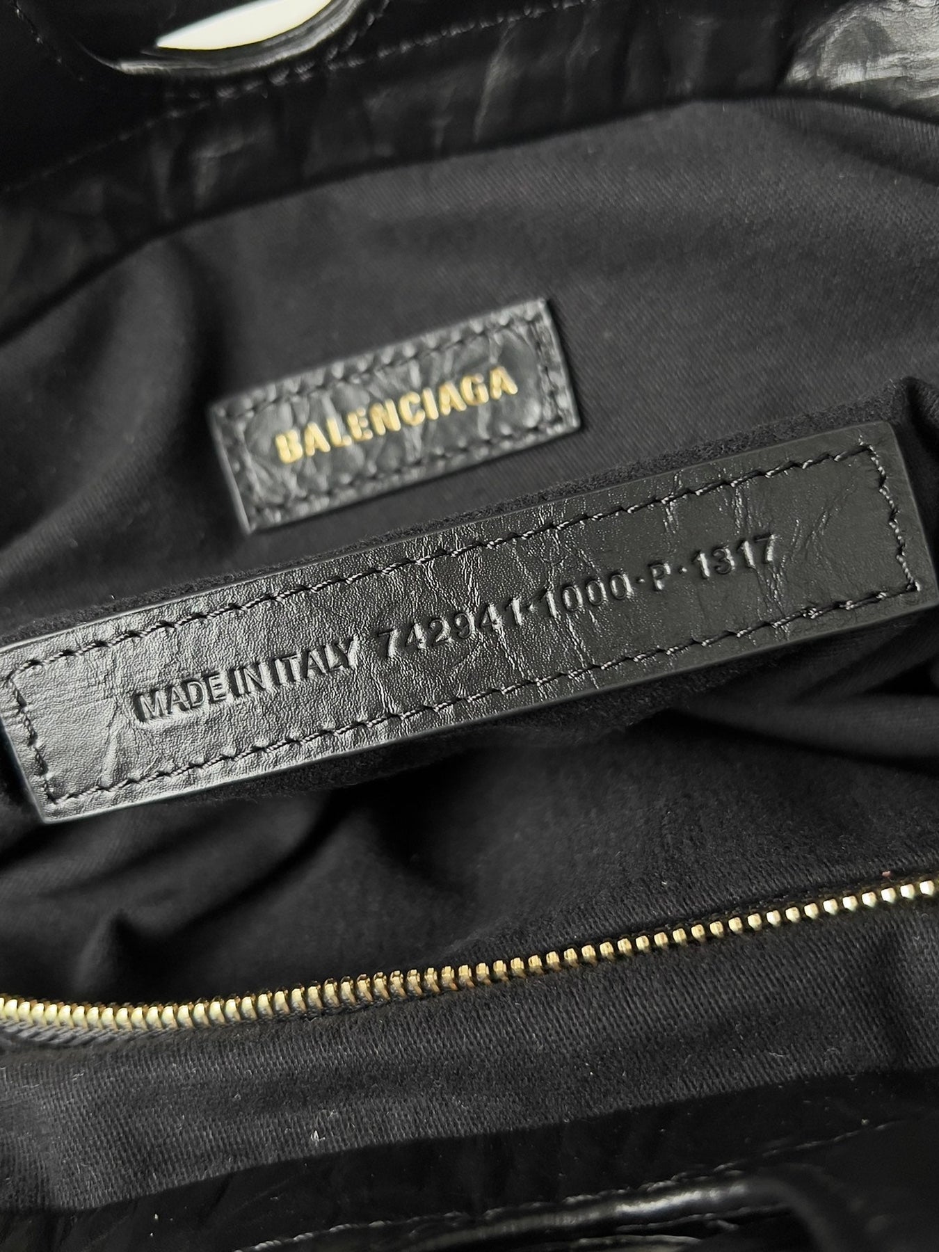 CRUSH LARGE TOTE BAG 46 IN BLACK CRUSHED CALFSKIN GOLD HARDWARE
