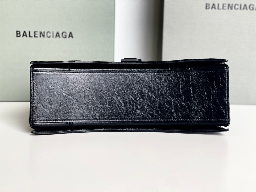 CRUSH MEDIUM CHAIN BAG 31 IN BLACK QUILTED CRUSHED CALFSKIN BLACK HARDWARE