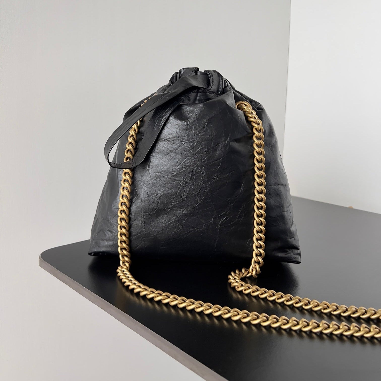 CRUSH SMALL TOTE BAG 26 IN BLACK CRUSHED CALFSKIN GOLD HARDWARE