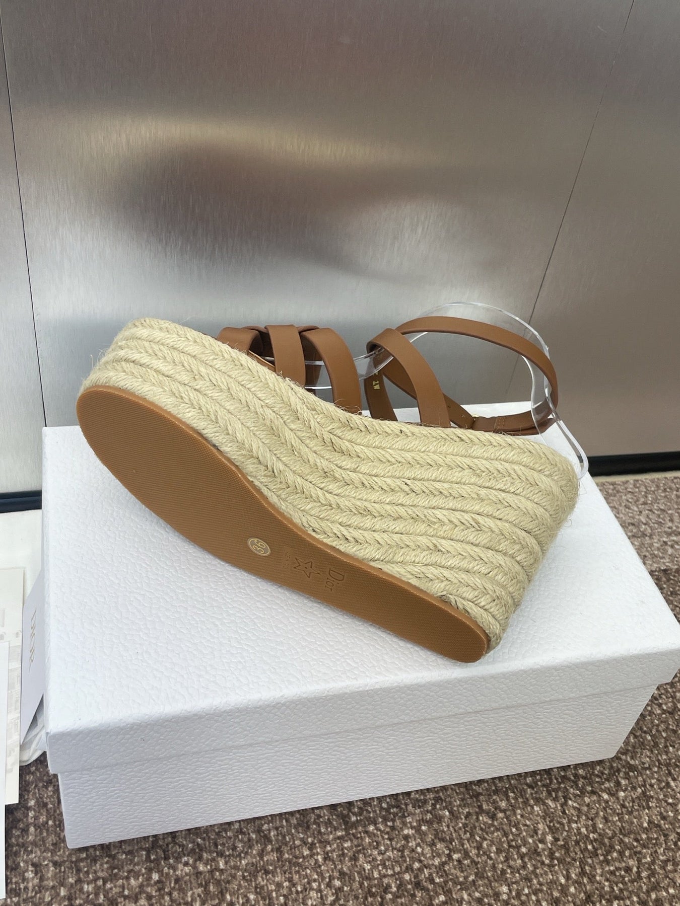 D-CLUB 25S HIGH HEEL WEDGE 100MM IN BROWN CALFSKIN RAFFIA SOLE