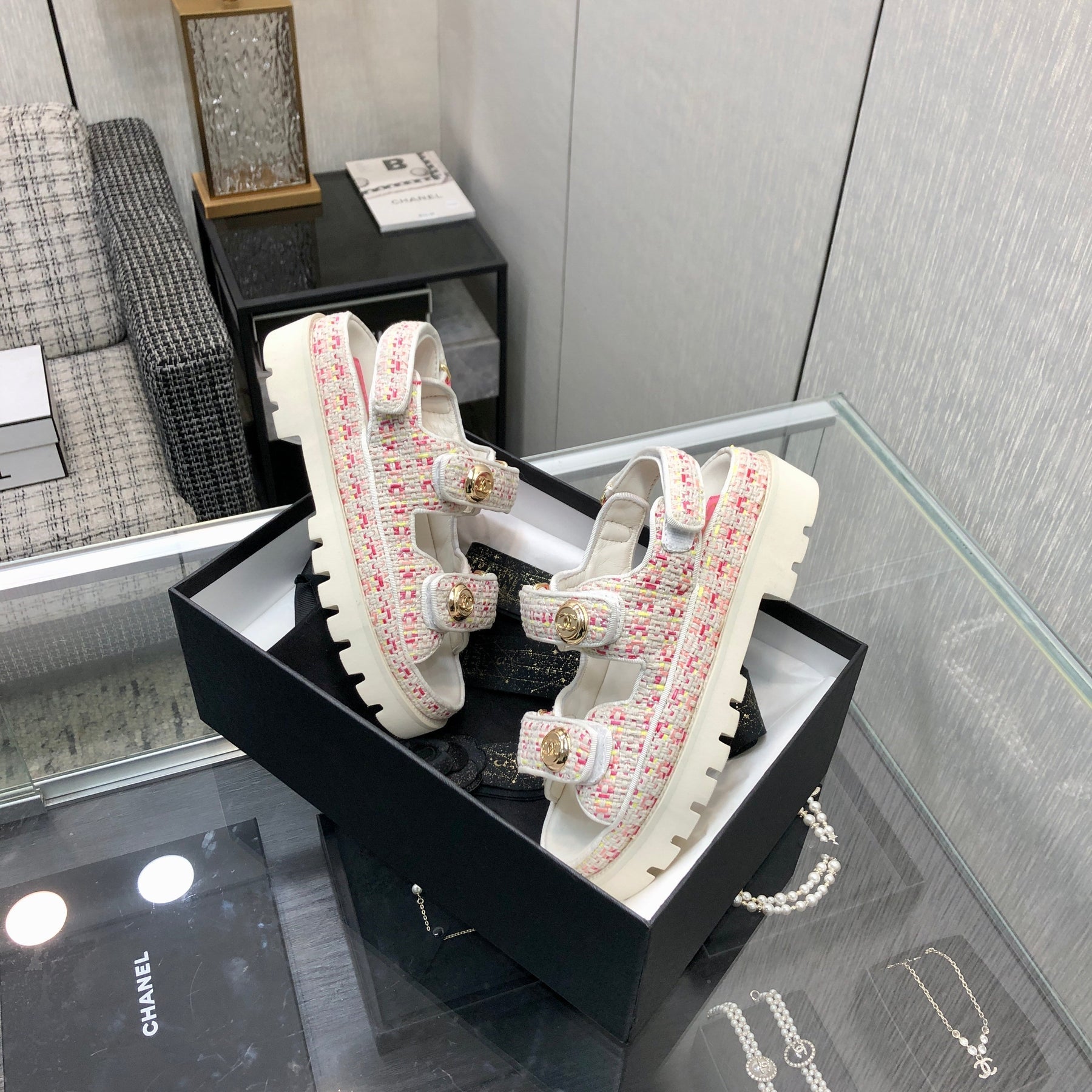 DAD SANDAL IN WHITE MIX BRIGHT PINK TWEED FABRIC