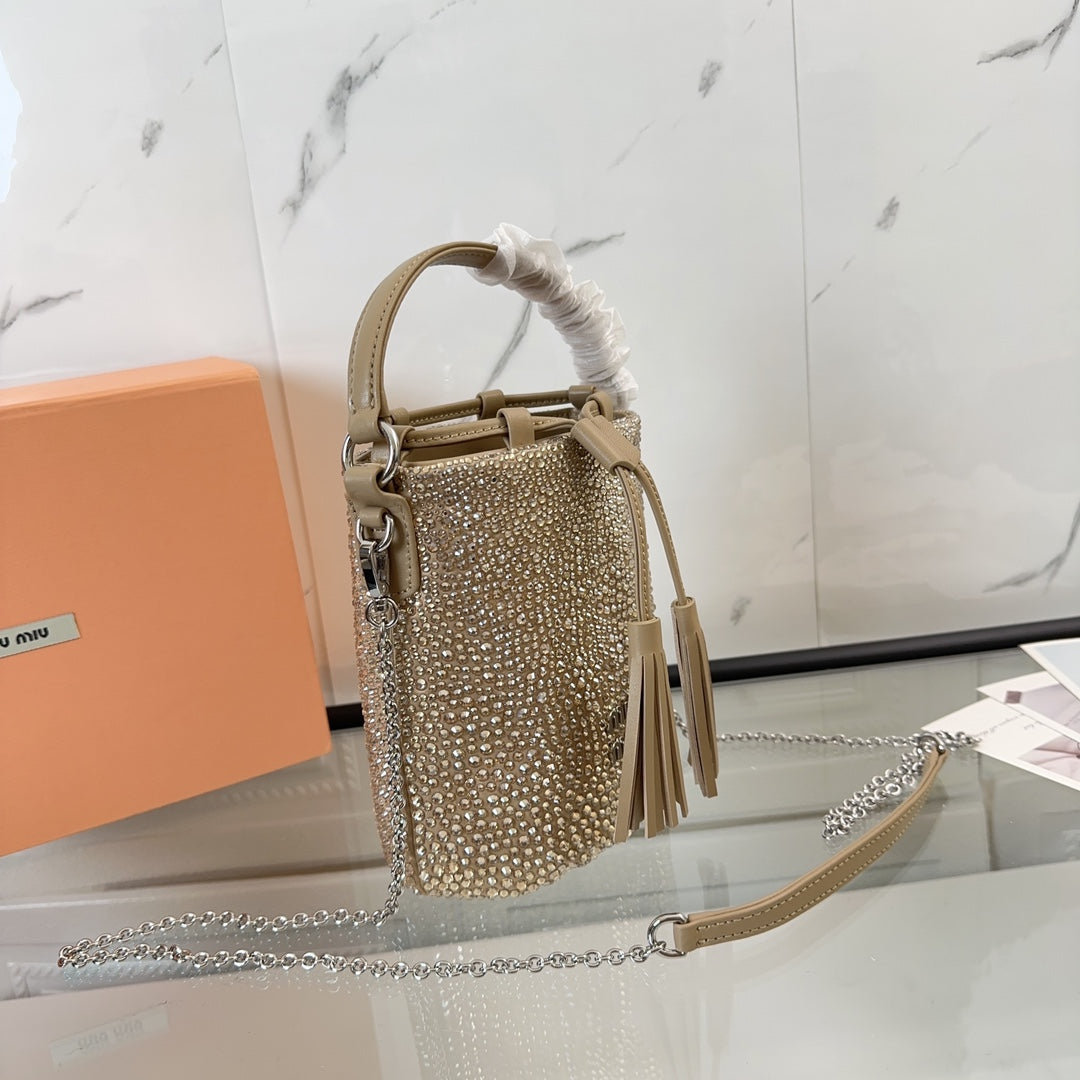 DIAMOND BUCKET BAG 17 IN ECRU BEIGE LAMBSKIN
