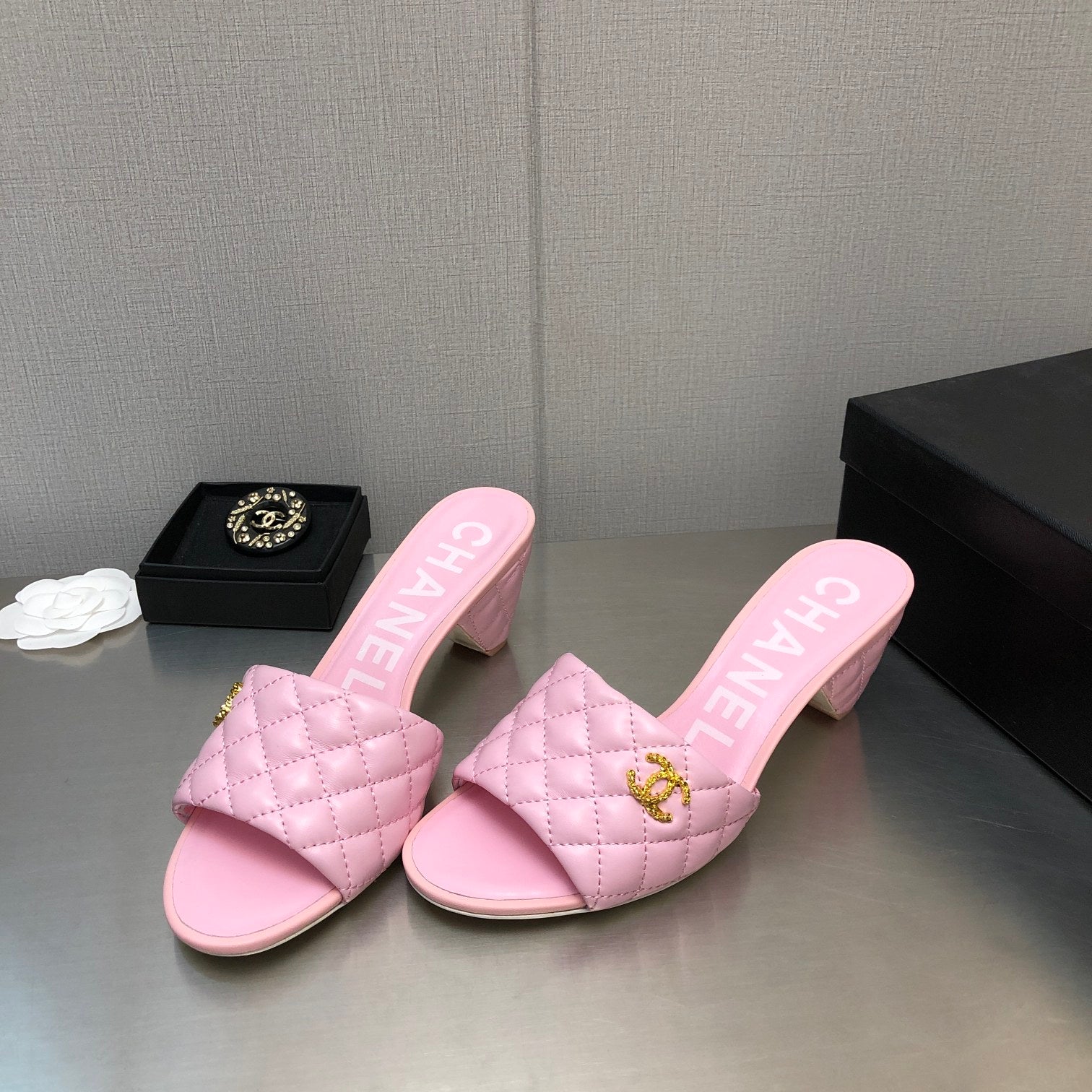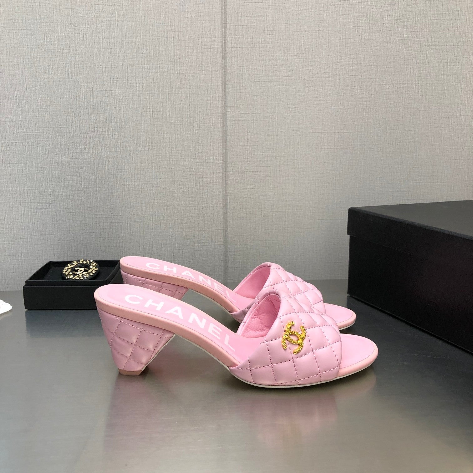 DIAMOND-QUILTED 6 CM SANDALS IN BABY PINK LAMBSKIN