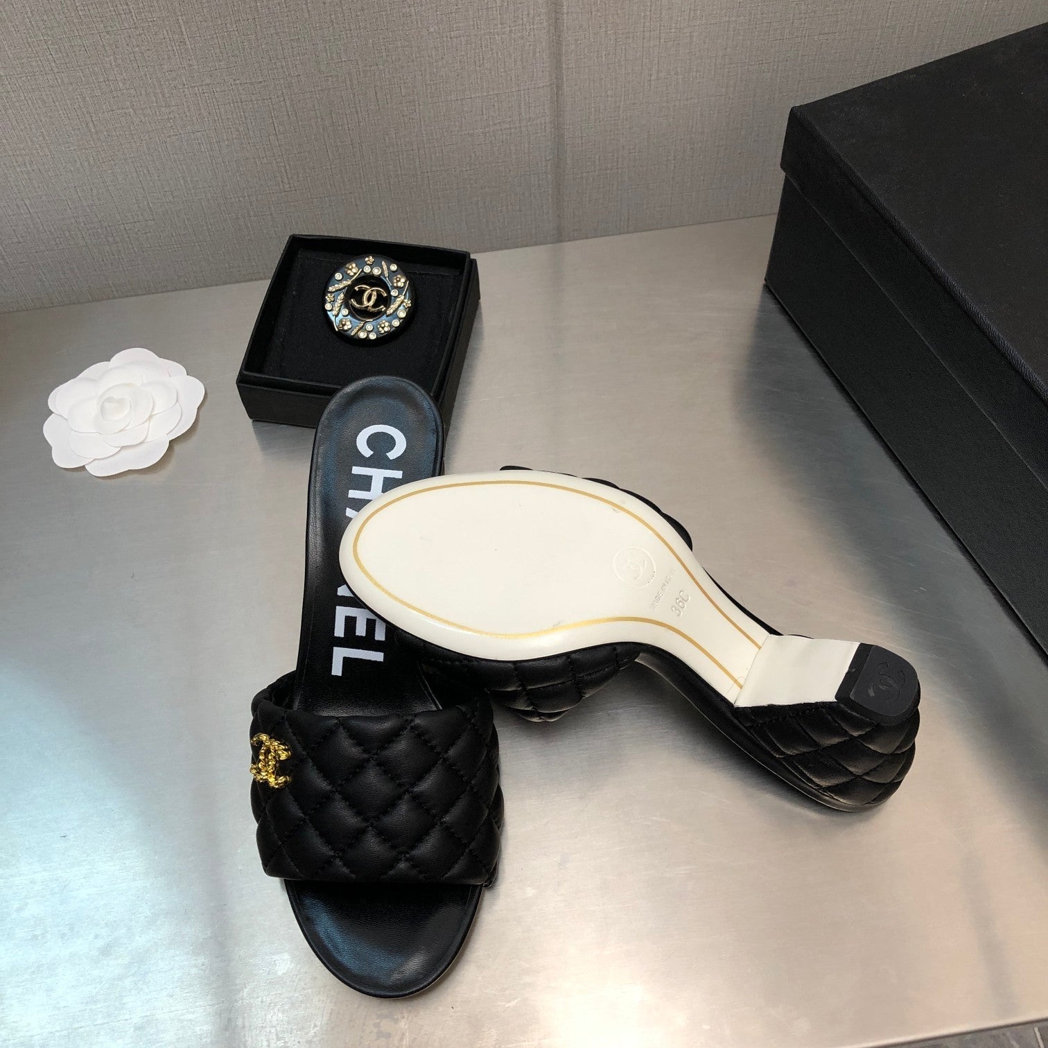 DIAMOND-QUILTED 6 CM SANDALS IN BLACK LAMBSKIN