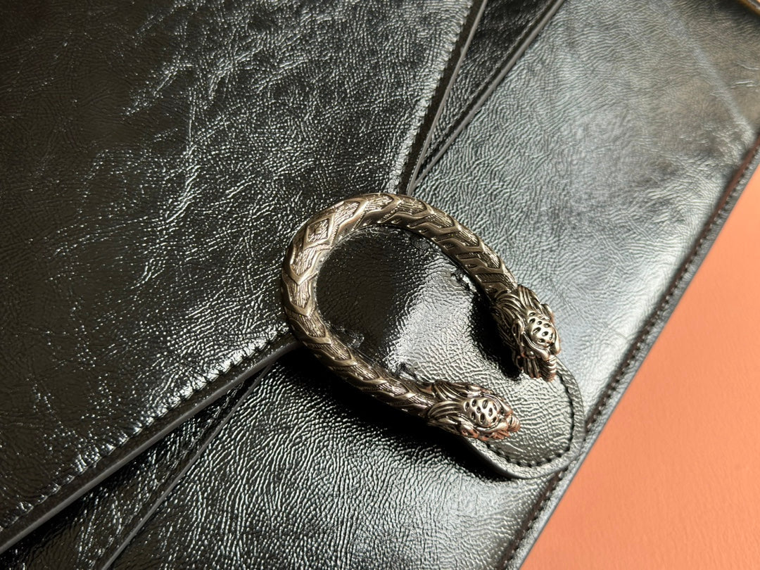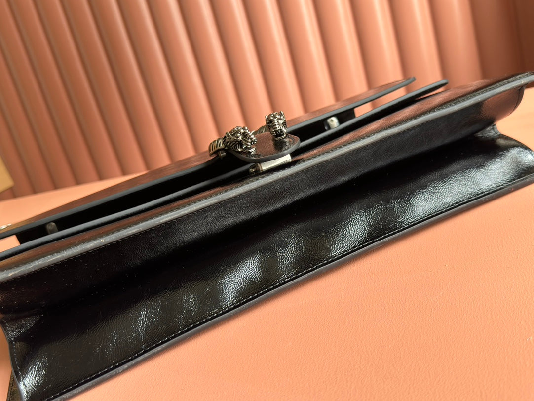 DIONYSUS LAGRE SHOULDER BAG 42 IN BLACK GG GLOSSY LAMBSKIN