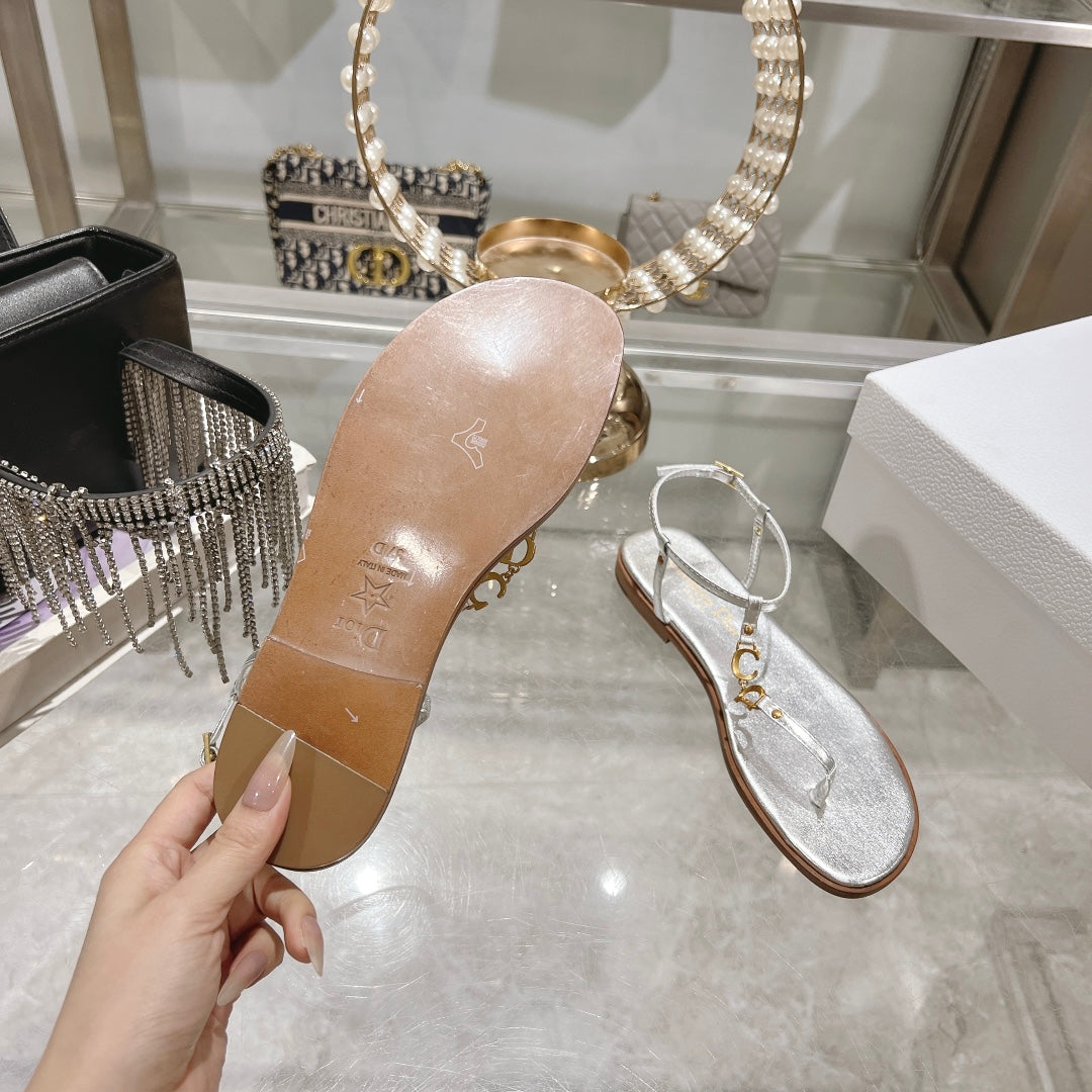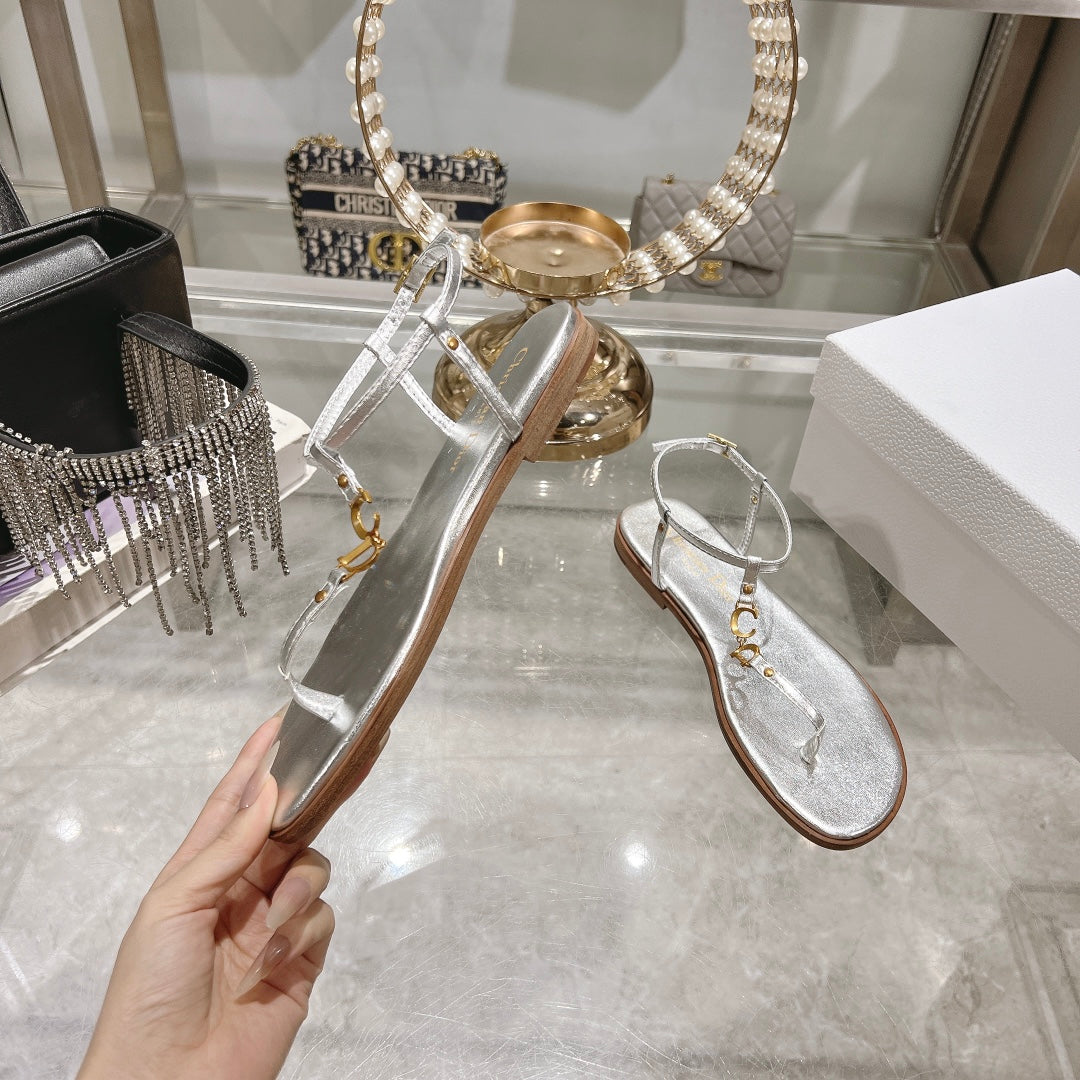 DIORIVIERA C'EST THONG SANDAL SILVER AQUAMARINA CALFSKIN