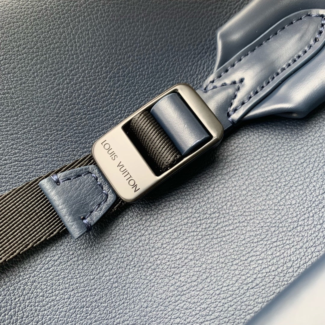 DISCOVERY PM BACKPACK 38 IN NAVY BLUE LAMBSKIN WHITE MONOGRAM LOGO