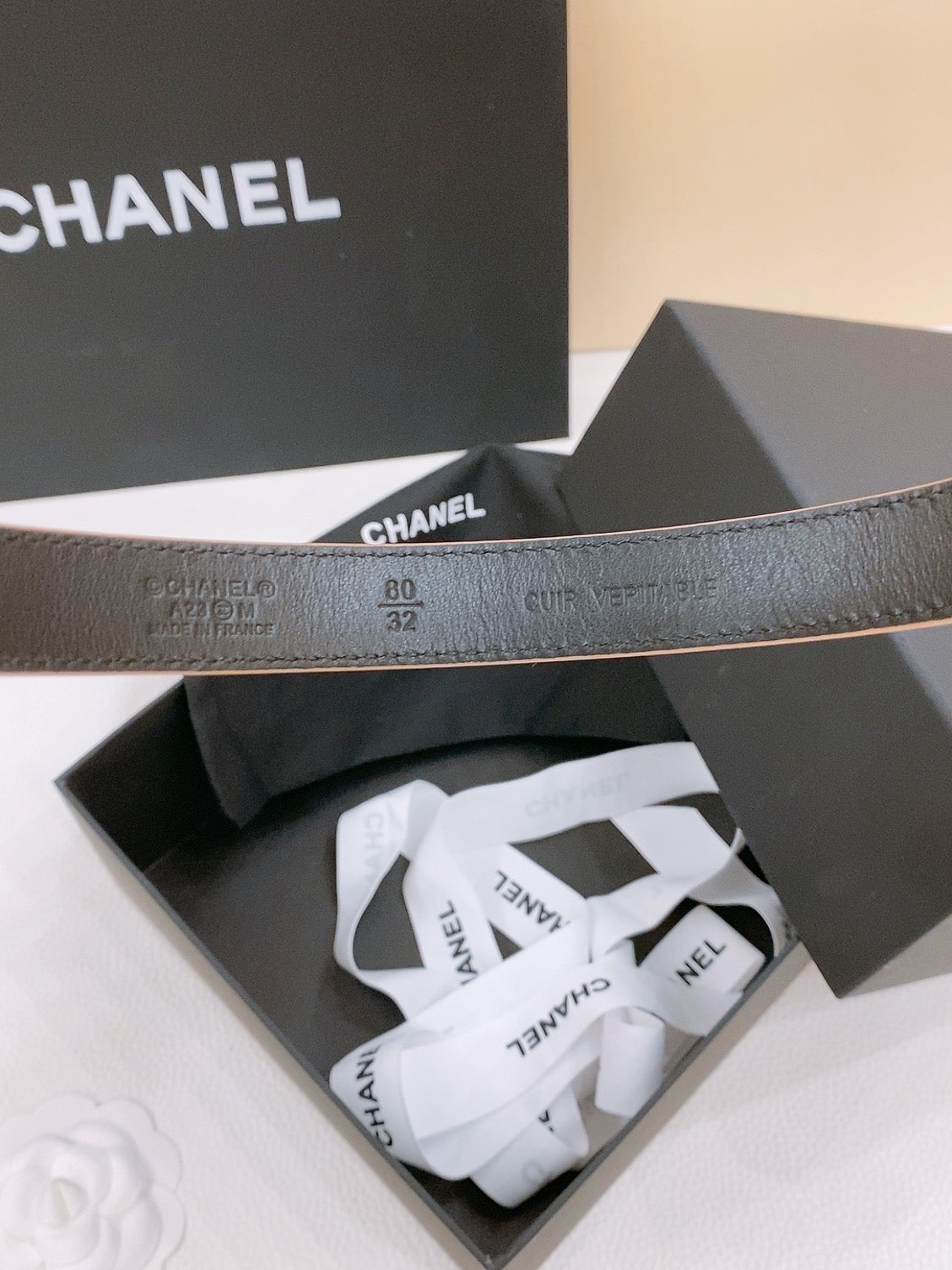 DOUBLE C BELT 20MM IN SAVANNA BROWN CALFSKIN WITH QUILTED STITCHING SPIRAL GOLD BUCKLE