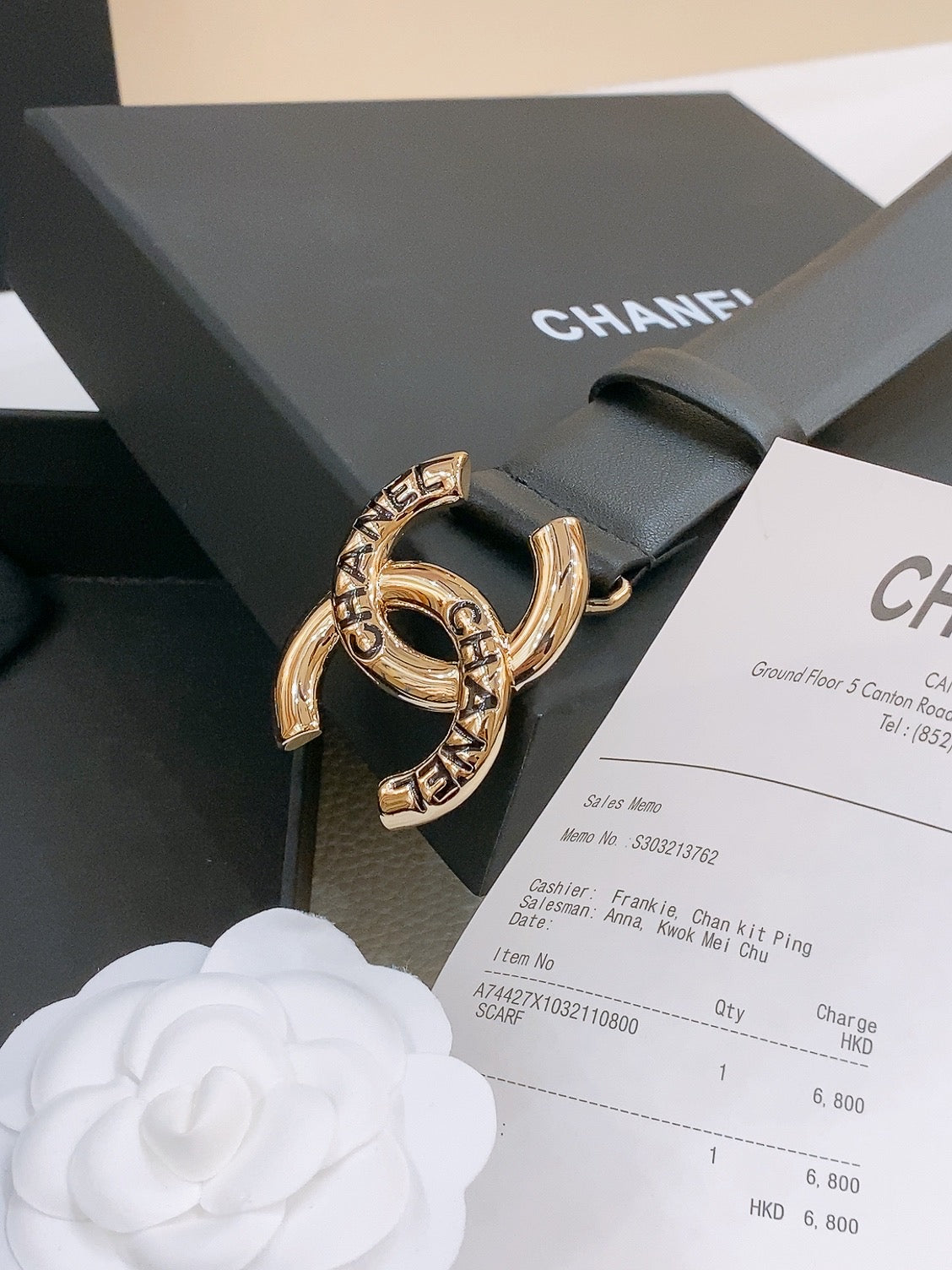 DOUBLE C BELT 30MM IN BLACK CALFSKIN GOLD BUCKLE EMBOSSED LOGO