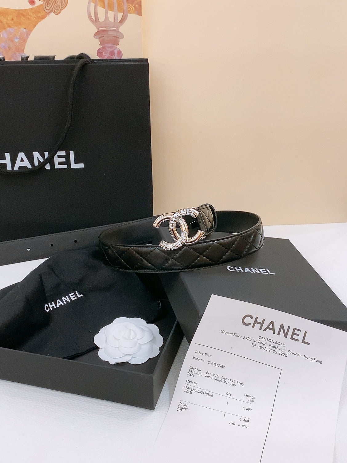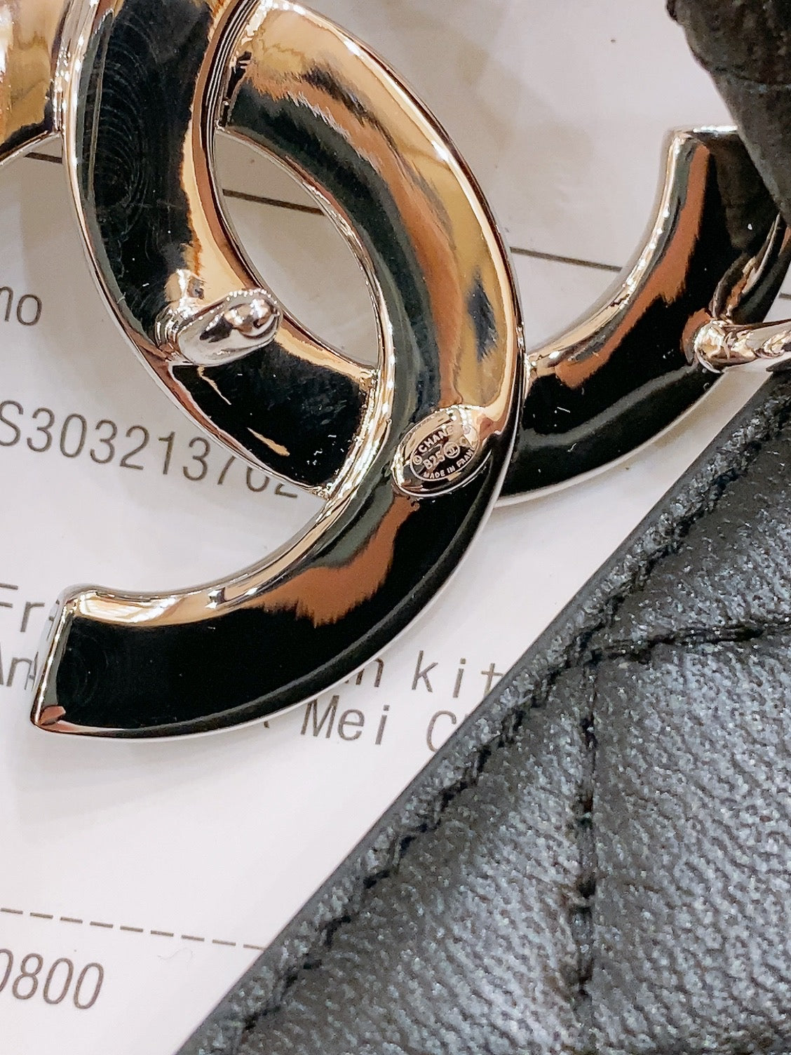 DOUBLE C BELT 30MM IN BLACK QUILTED LAMBSKIN WITH SILVER RESIN BUCKLE EMBOSSED LOGO
