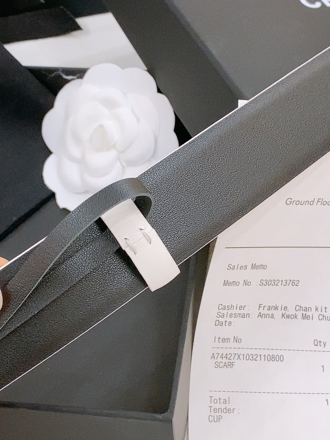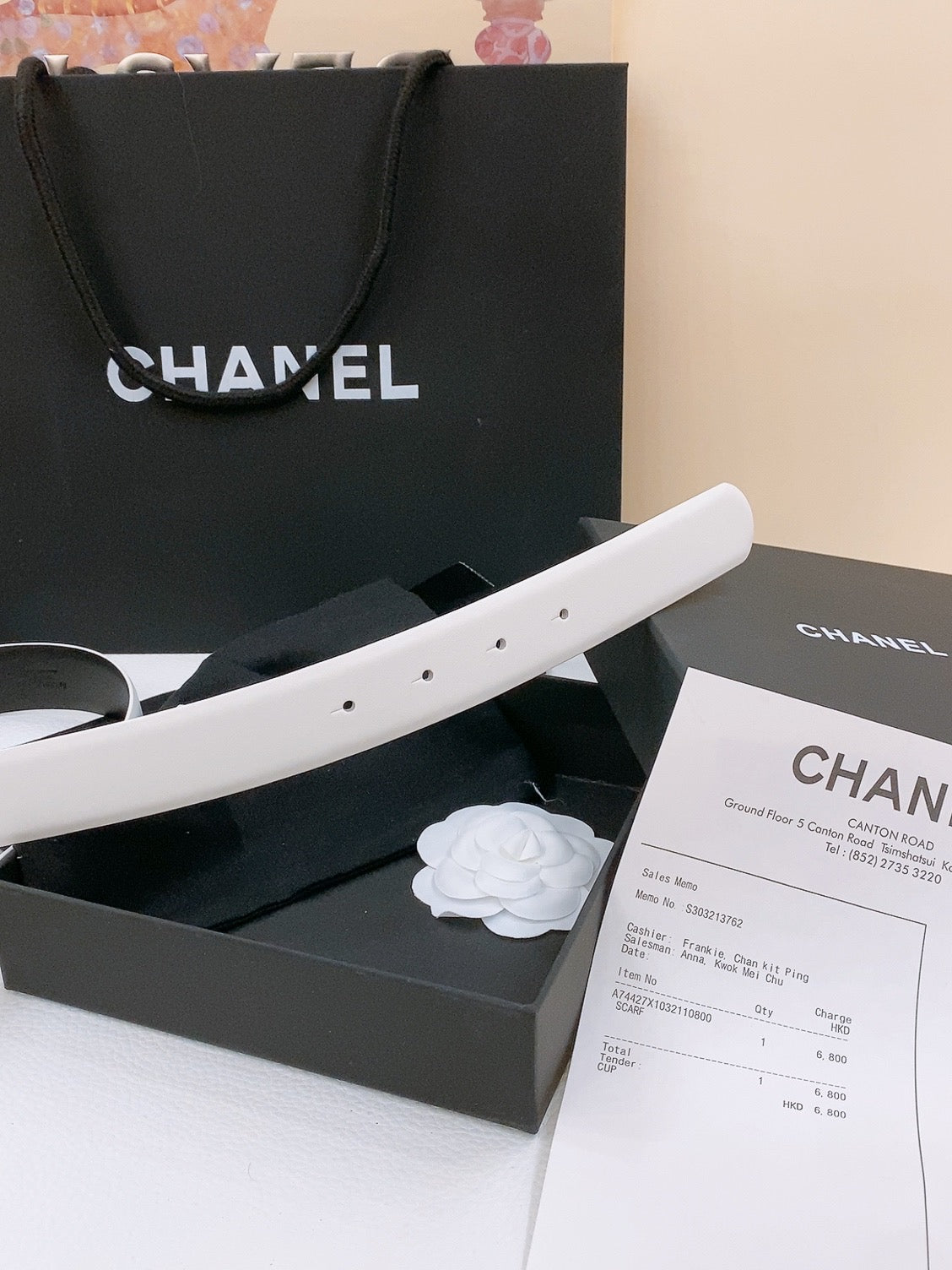 DOUBLE C BELT 30MM IN WHITE CALFSKIN SILVER BUCKLE EMBOSSED WHITE LOGO