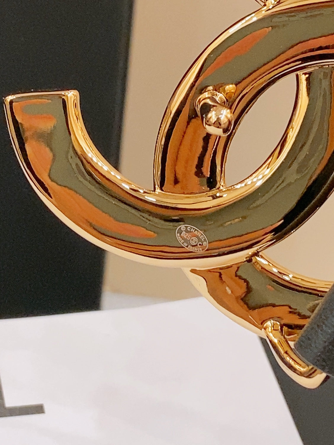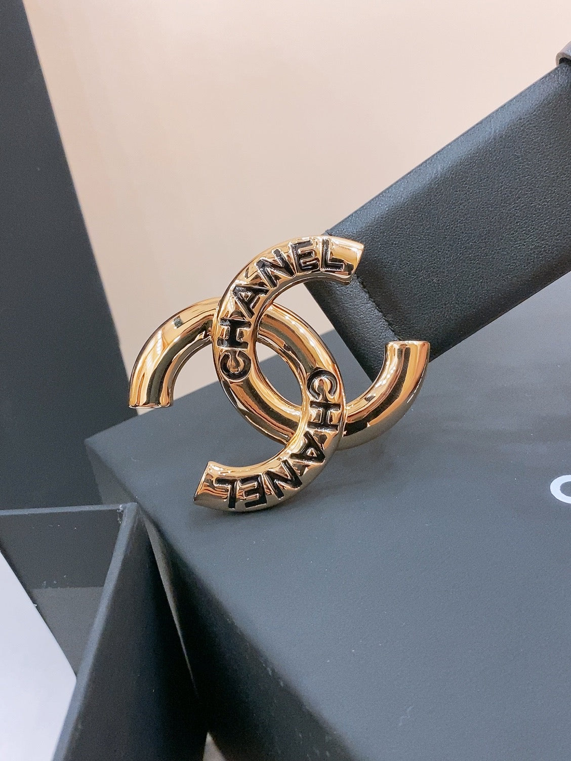DOUBLE C BELT 40MM IN BLACK CALFSKIN GOLD BUCKLE EMBOSSED BLACK LOGO