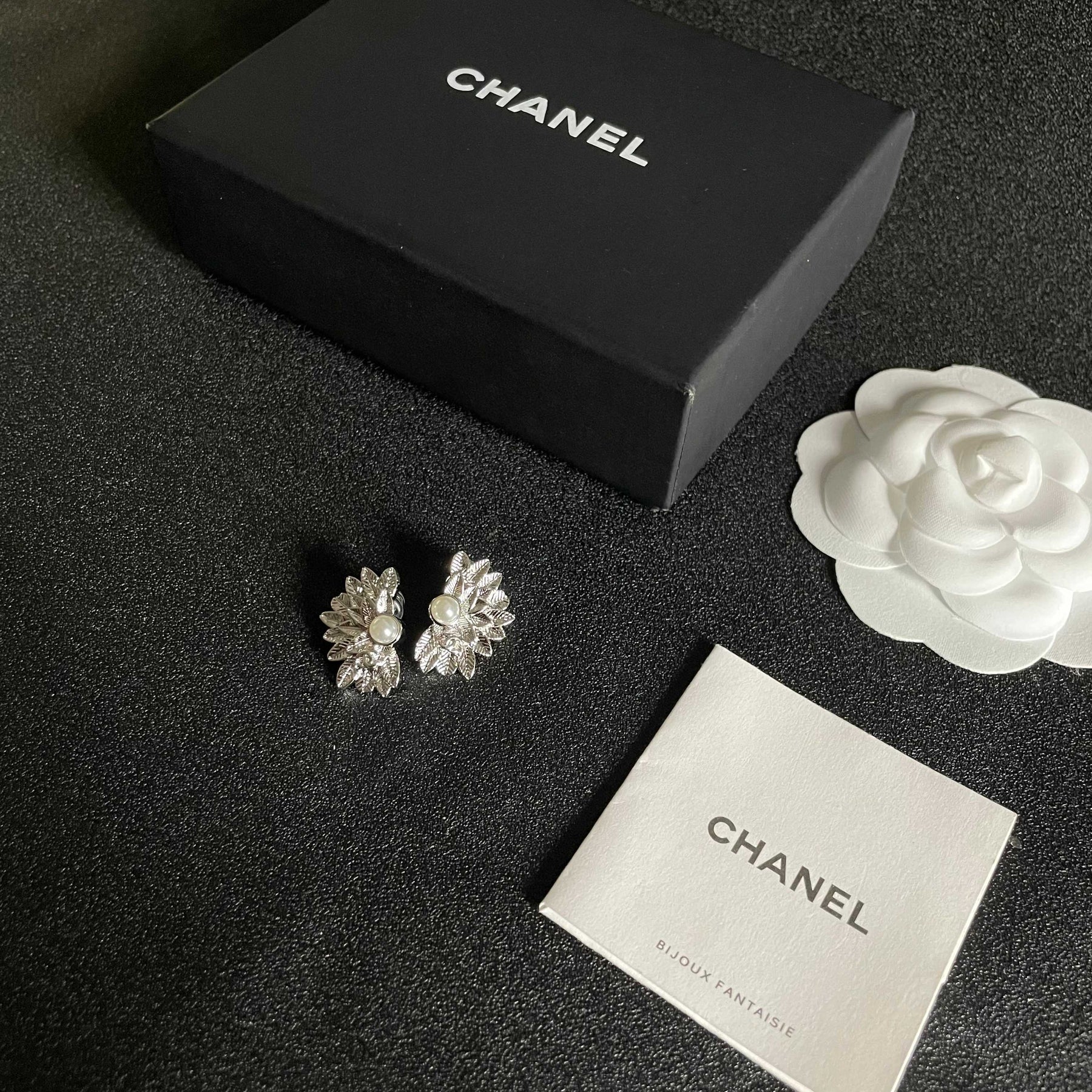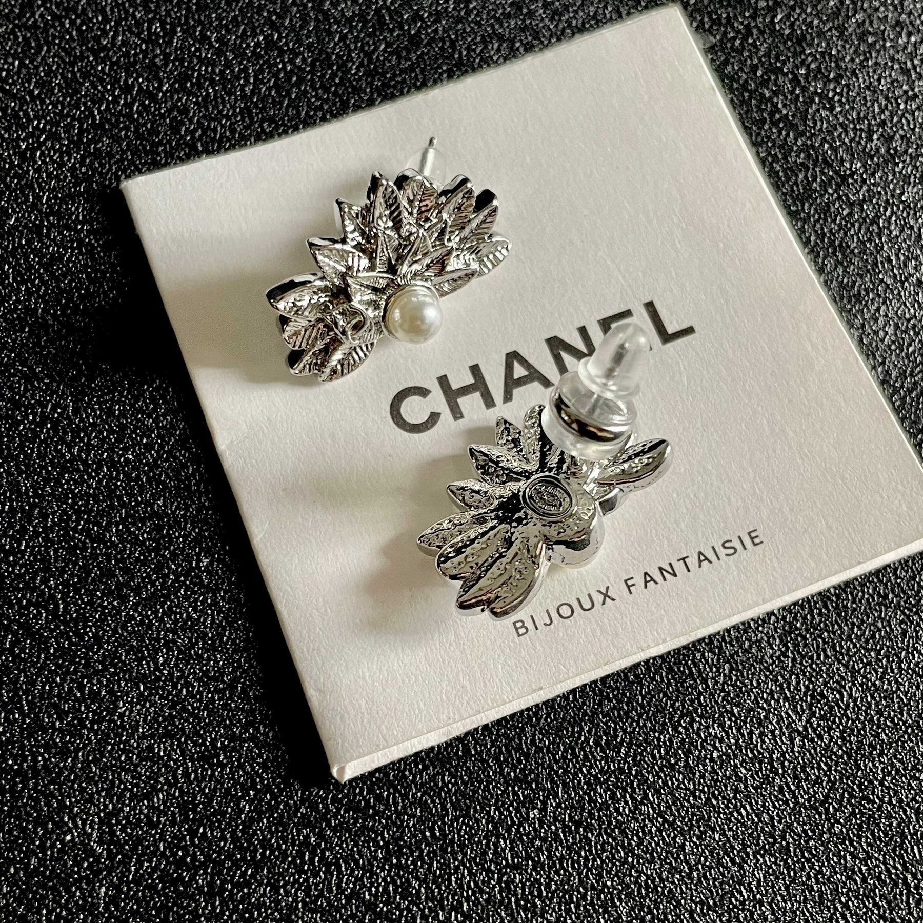 DOUBLE C STUD EARRINGS IN HALF-FLOWER SHAPE WITH PEARL CENTER