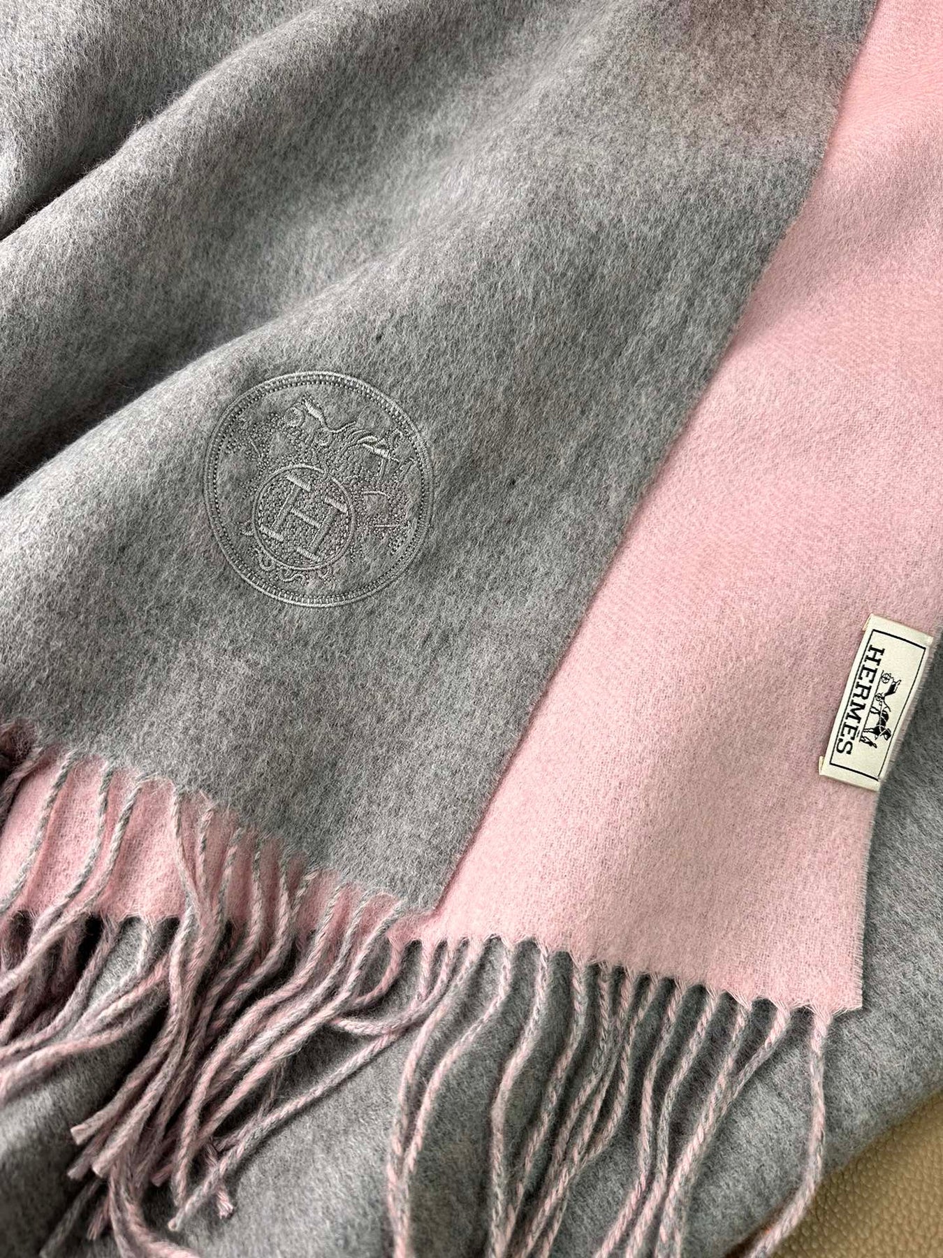DOUBLE-FACE SCARF 200 CM IN LIGHT PINK AND GREY CASHMERE