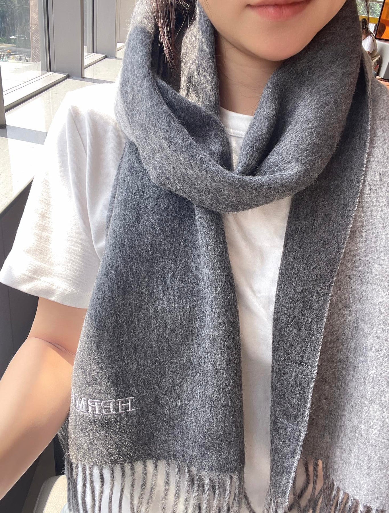 DOUBLE-FACE STOLE SCARF IN SMOKE GRAY MIX WHITE CASHMERE 394465