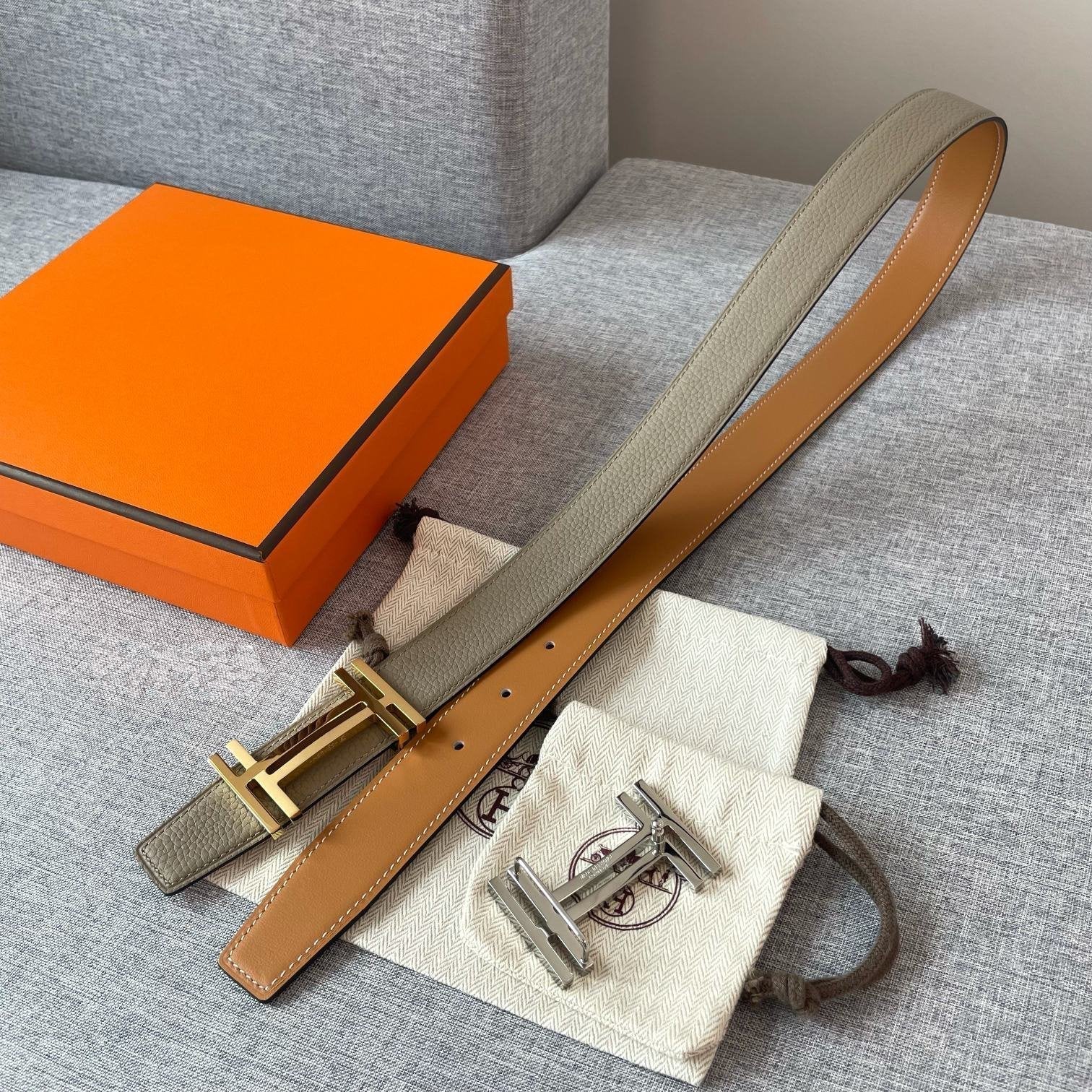 DOUBLE H REVERSIBLE BELT 32MM GOLD BUCKLE TIN GREY GOLD LEATHER