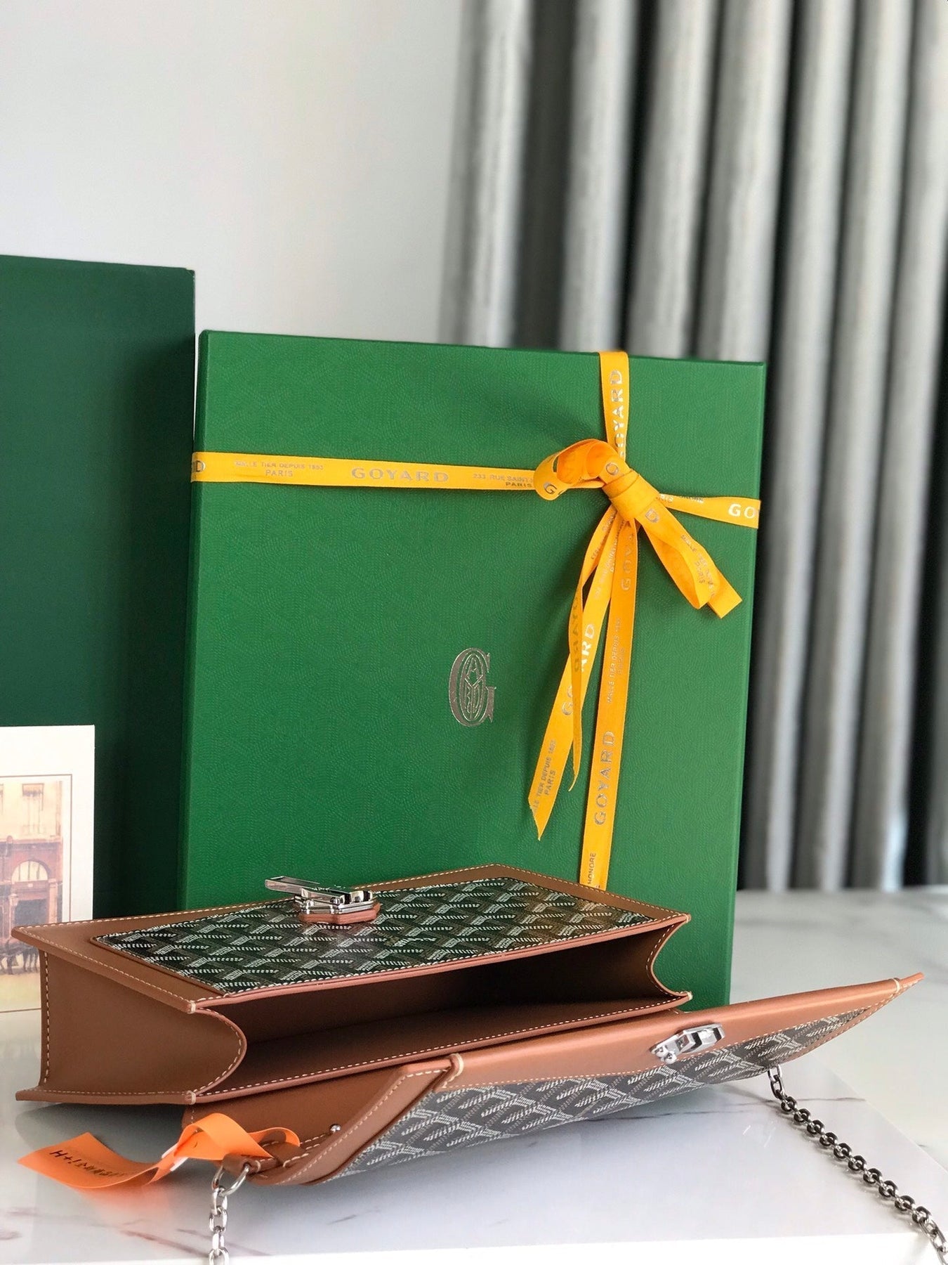 DUCHESSE MARIE-CAROLINE BAG 25 IN BLACK GOYARDINE CANVAS AND TAN SMOOTH CALFSKIN