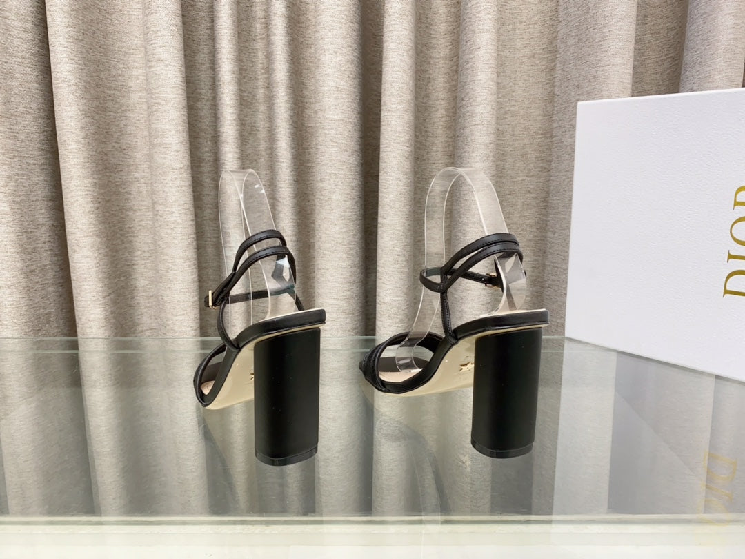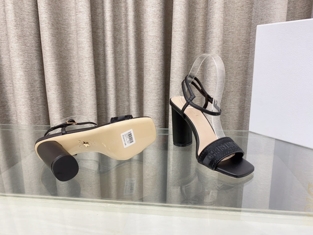 DWAY HIGH HEEL EMBROIDERED SANDAL BLACK CALFSKIN 95 MM