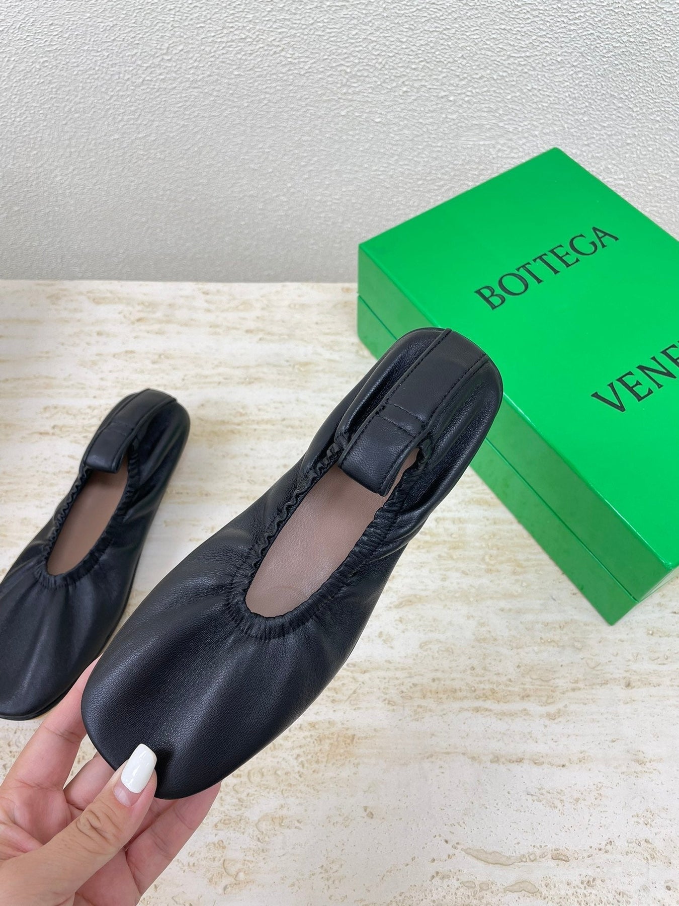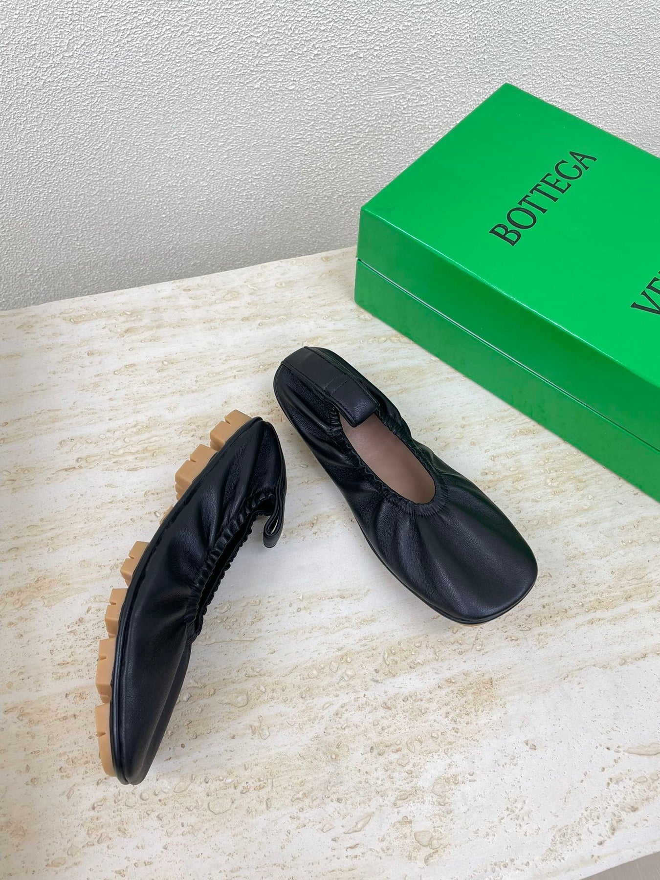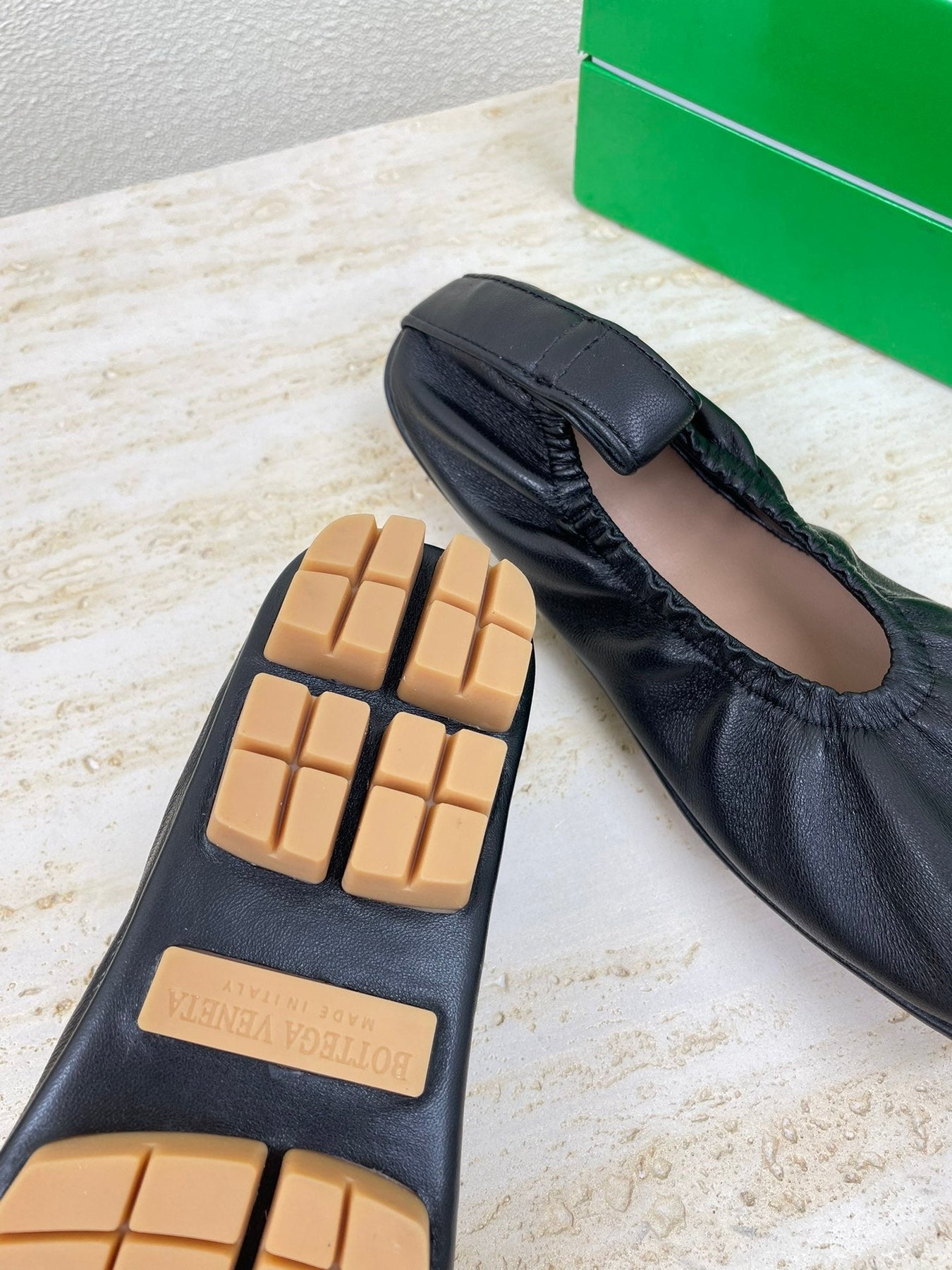 ELASTIC BALLERINA FLATS IN BLACK LAMBSKIN