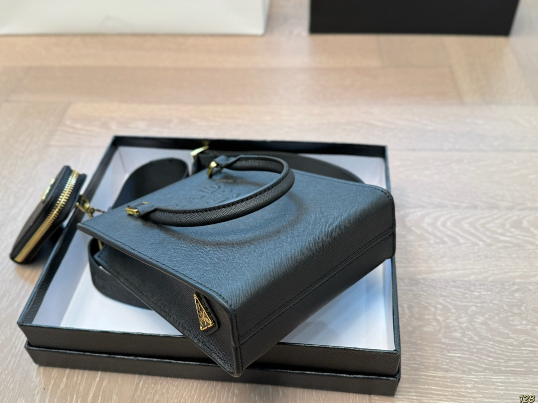 EMBOSSED LOGO MINI CROSSBODY BAG 19 IN BLACK SAFFIANO LEATHER