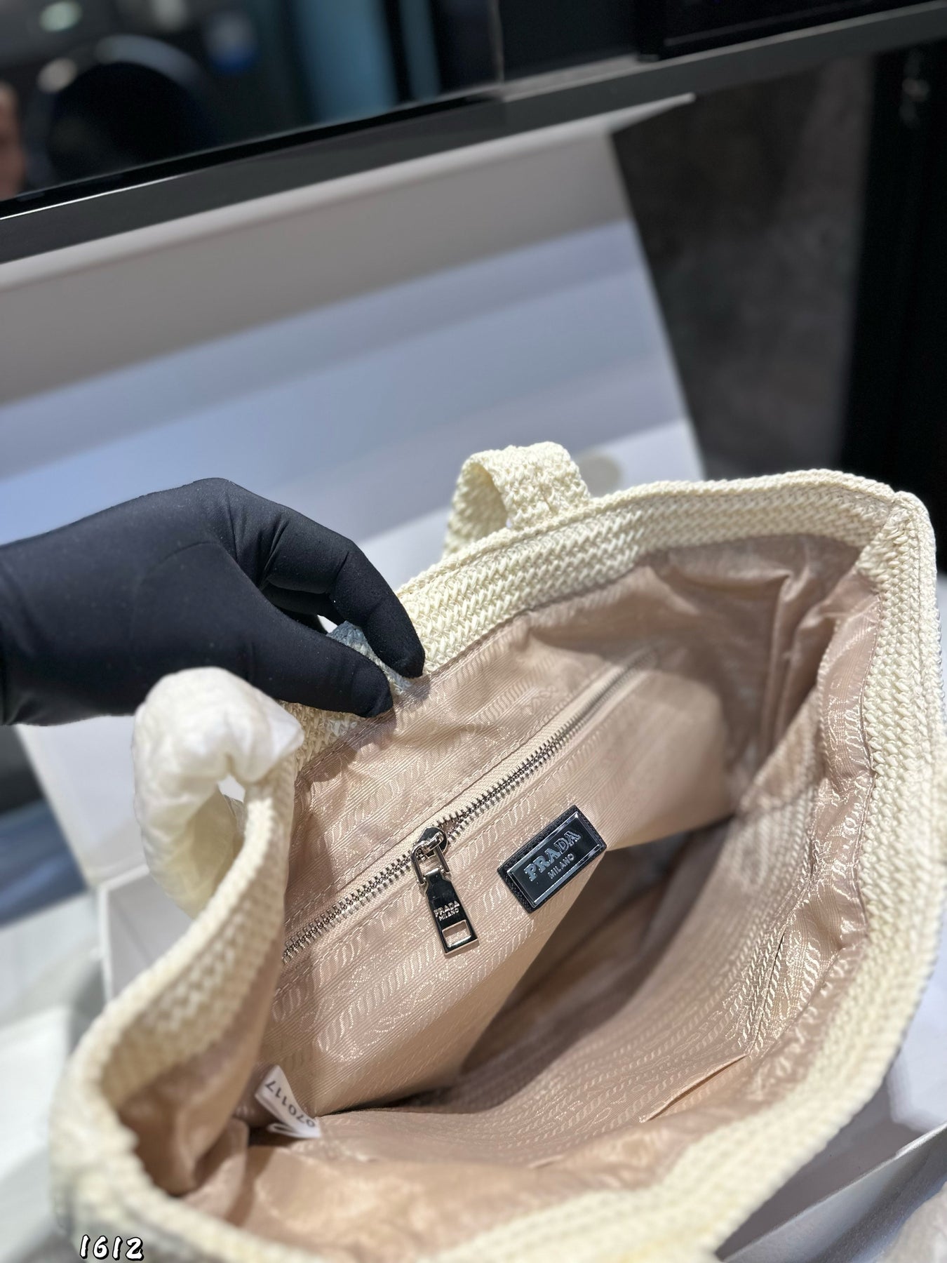 EMBROIDED LOGO MINI TOTE BAG 23 IN WHITE WOVEN RAFFIA