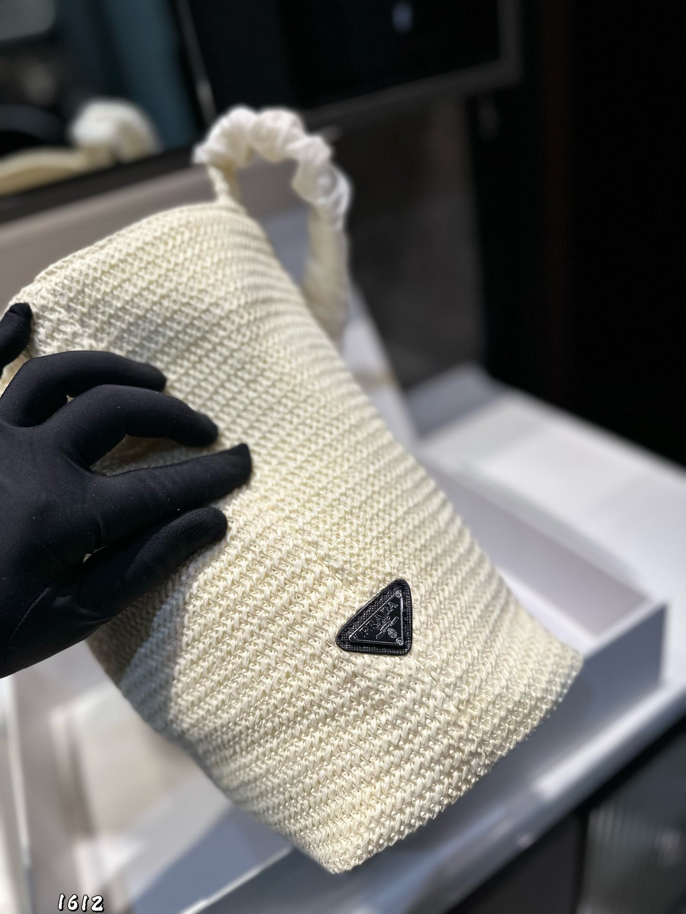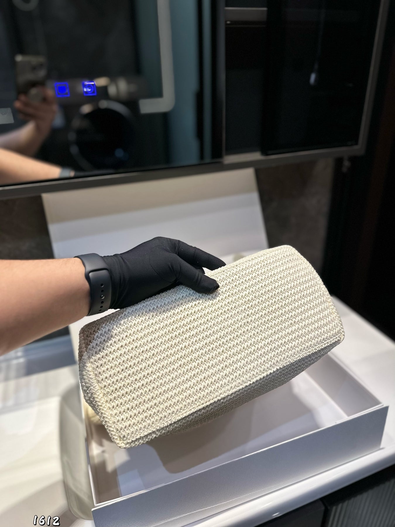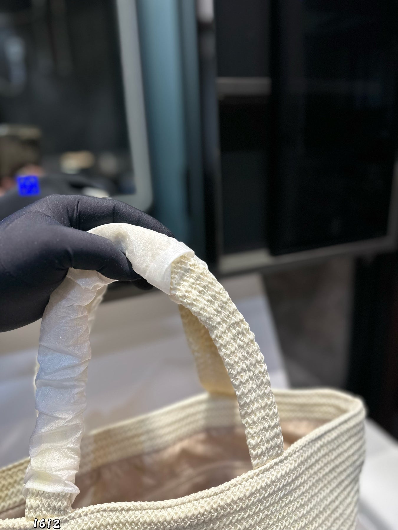 EMBROIDED LOGO TOTE BAG 30 IN WHITE WOVEN RAFFIA