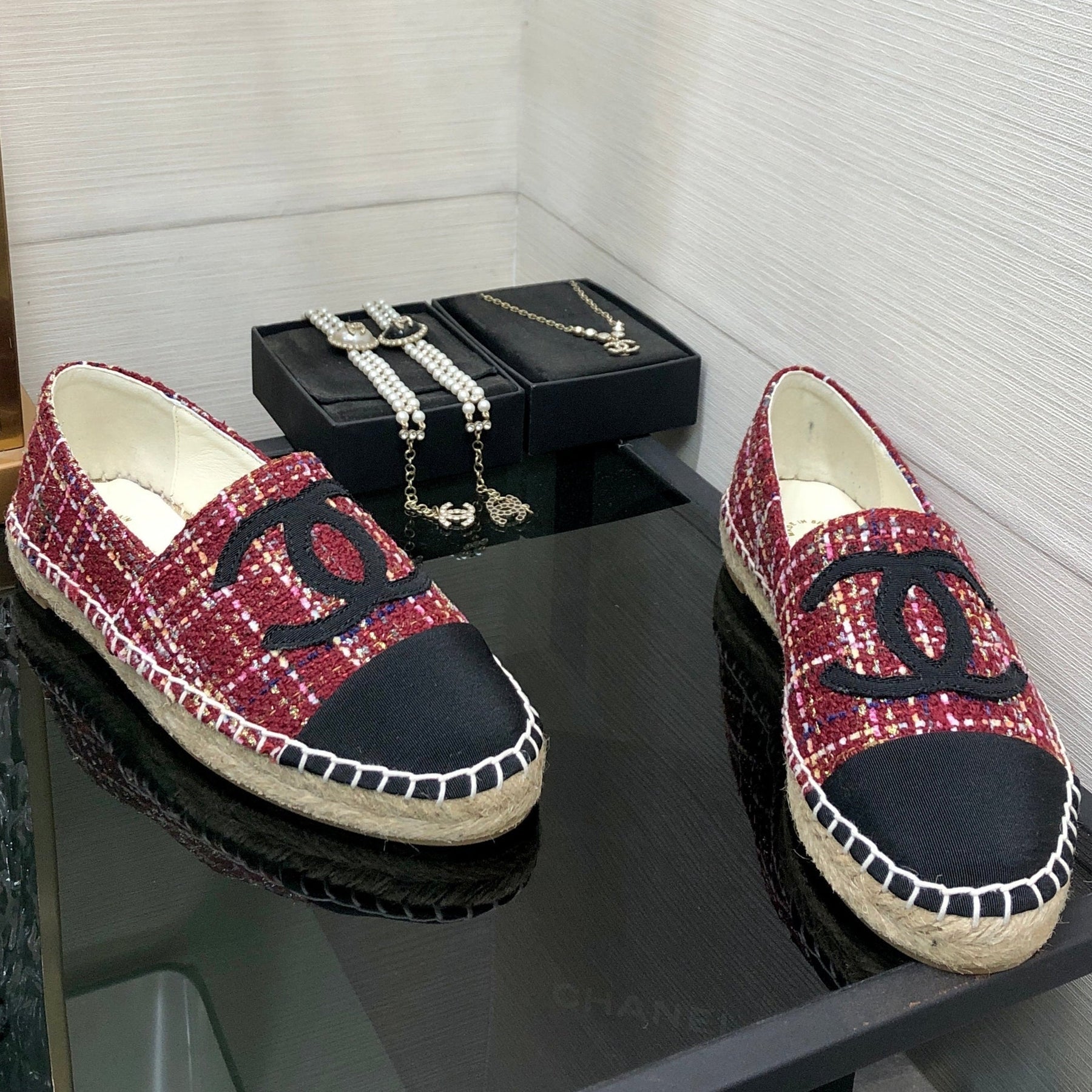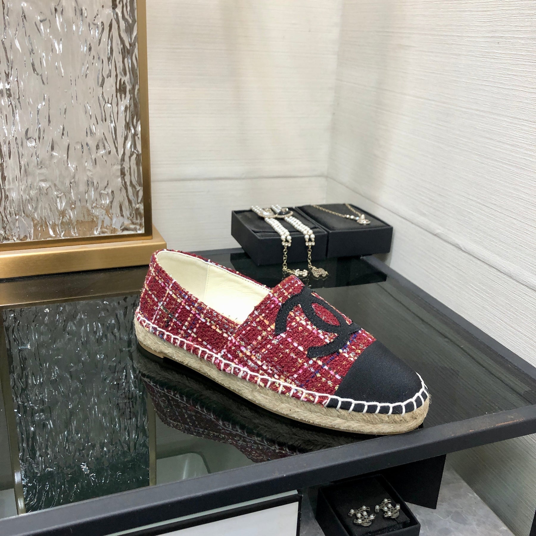 ESPADRILLE BLACK MIX CRIMSON RED TWEED FABRIC FLATS