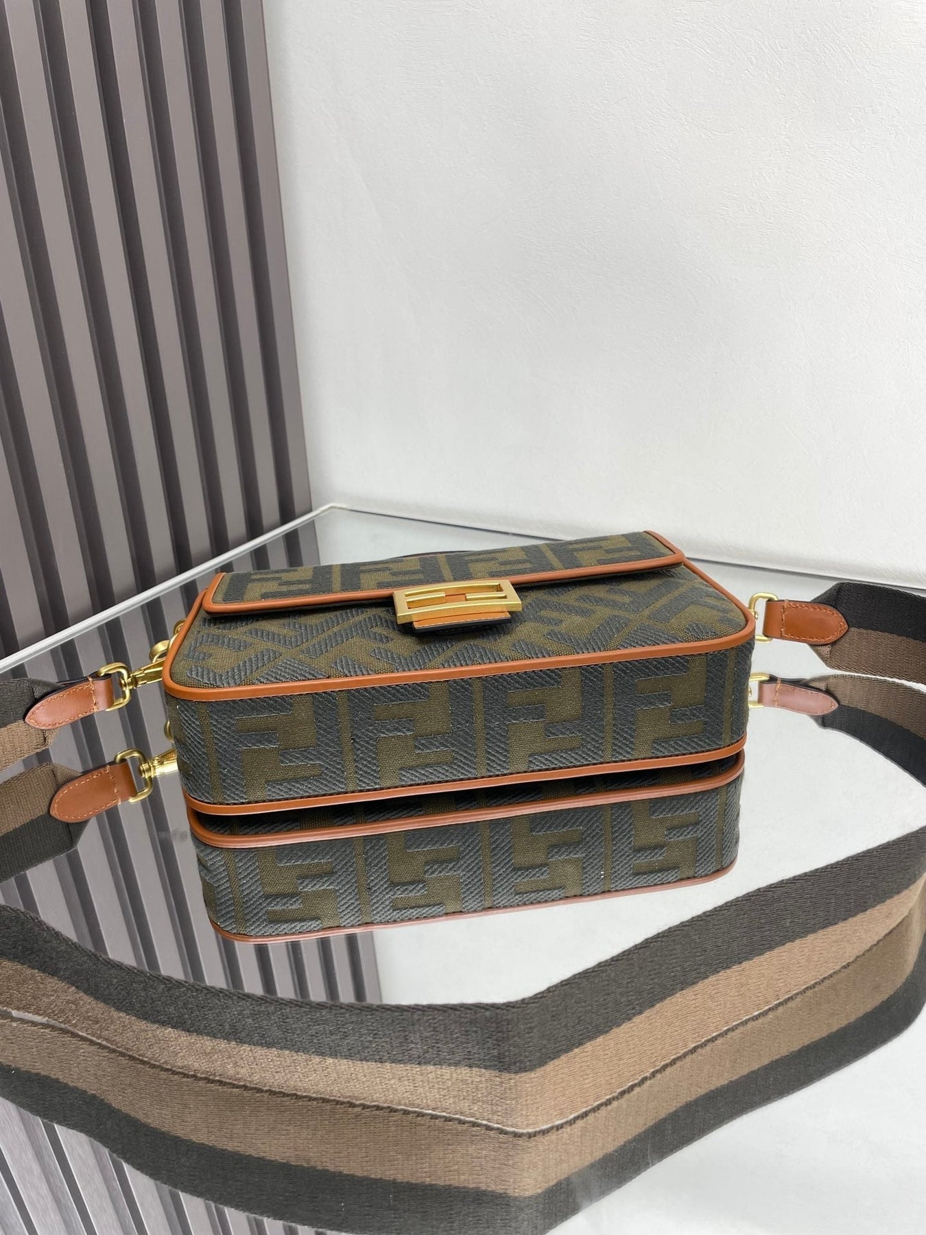 Fend Baguette Green Canvas Bag 27 with FF Embroidery Ghw