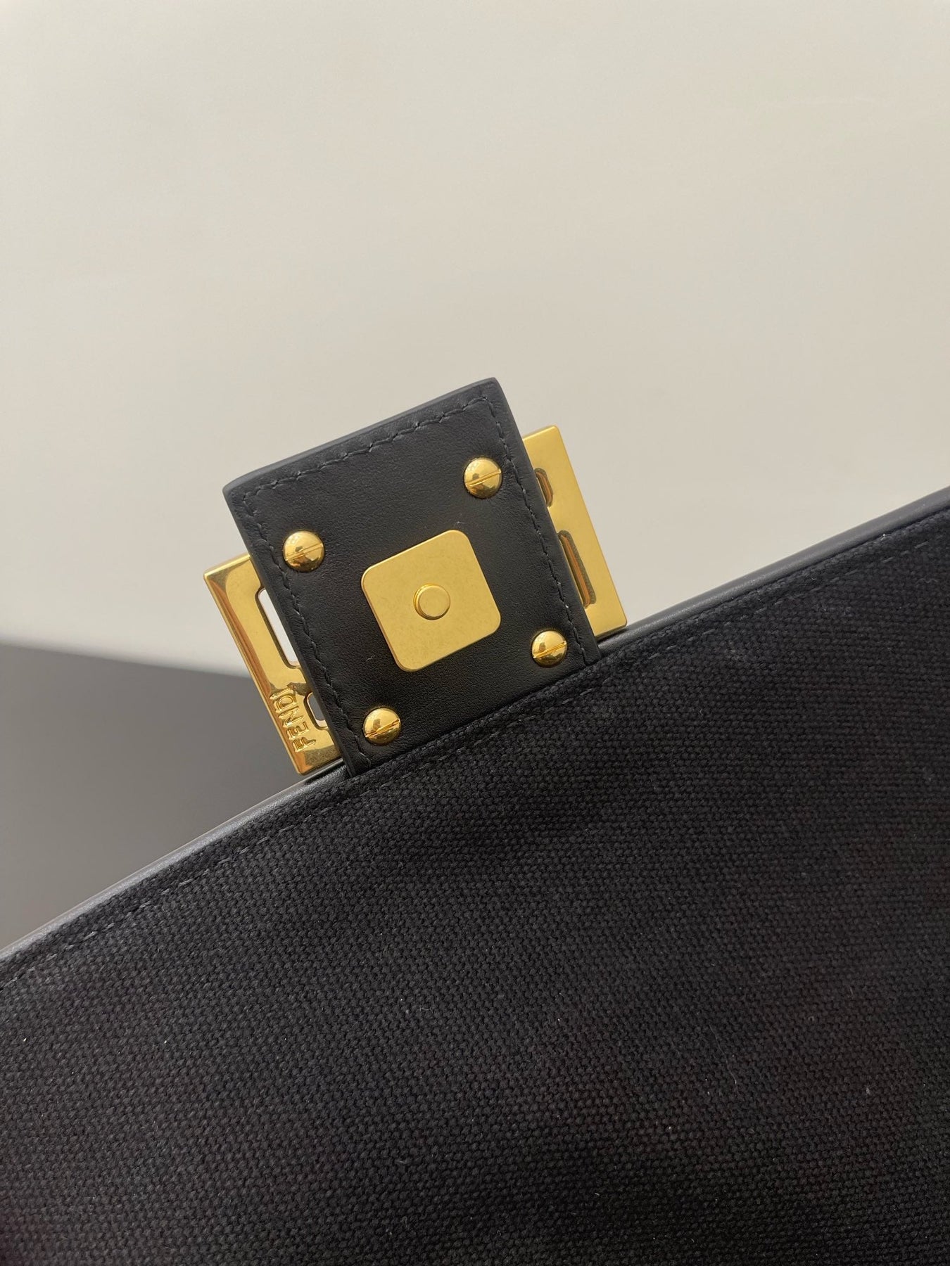 FENDI 26 BAGUETTE BLACK NAPPA LEATHER BAG WITH GOLD HARDWARE