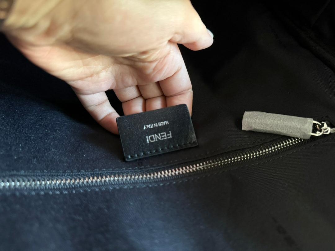 FENDI 44 MINI BACKPACK IN BLACK MONOGRAM JACQUARD FABRIC AND CALFSKIN