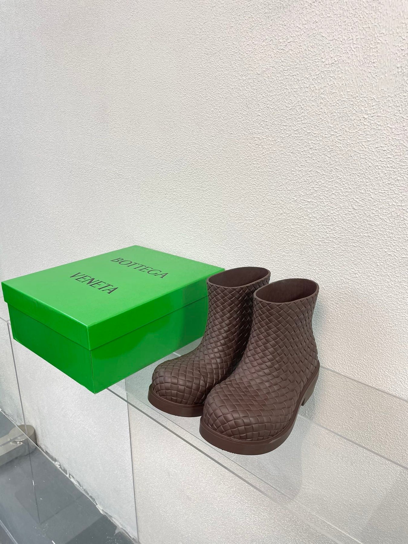 FIREMAN BOOTS IN CHOCOLATE BROWN RUBBER WITH ICONIC INTRECCIO MOTIF