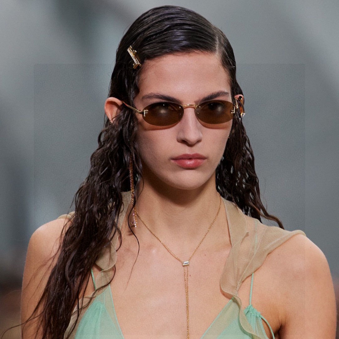FIRST CRYSTAL RIMLESS OVAL FRAME SUNGLASSES 557152 IN METAL
