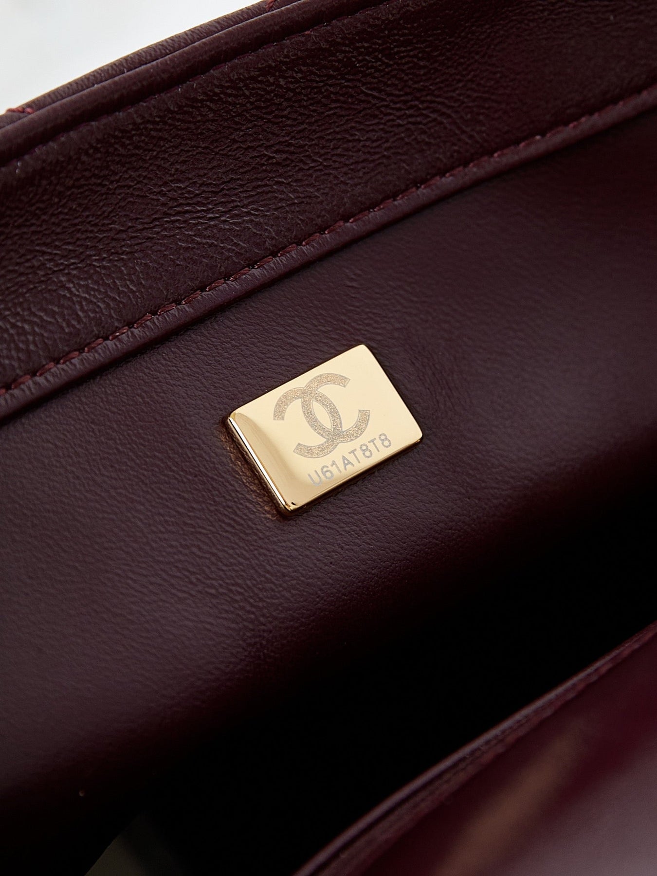 FLAP BAG WITH TOP HANDLE 25 IN WINE RED OIL-WAX LAMBSKIN GOLD HARDWARE