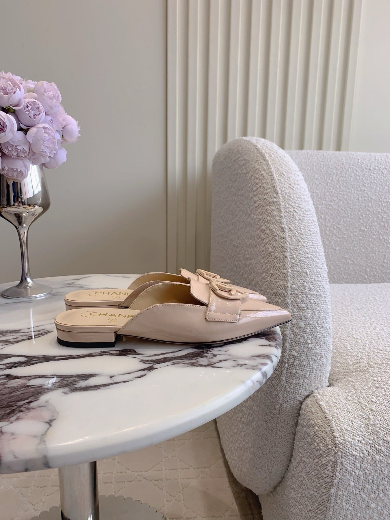 FLAT MULE 2 CM IN BEIGE CREAM PATENT CALFSKIN