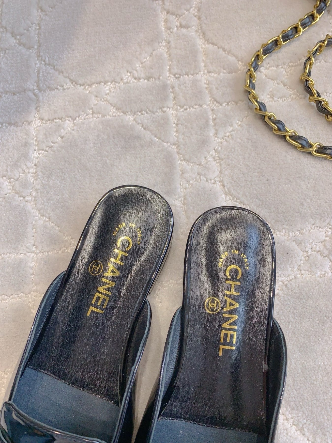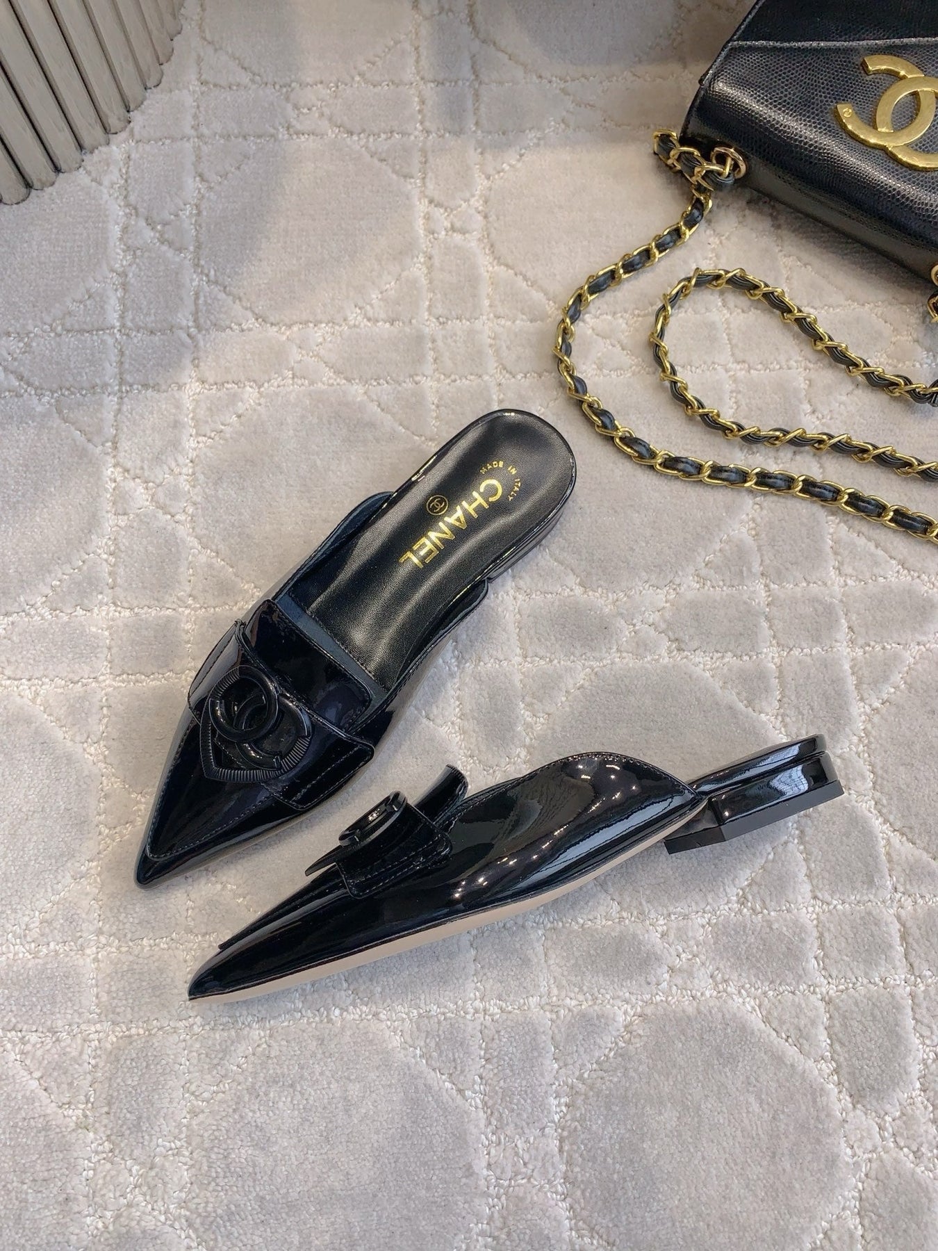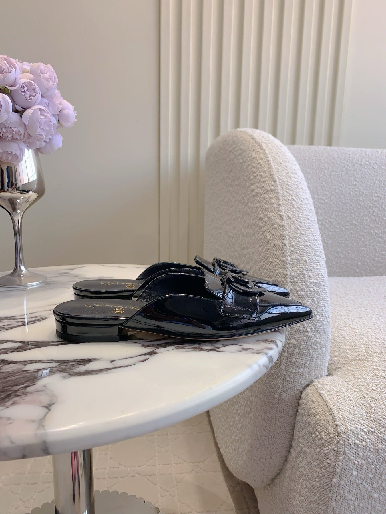 FLAT MULE 2 CM IN BLACK PATENT CALFSKIN